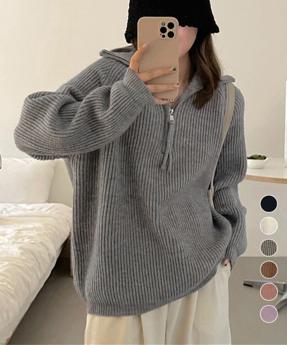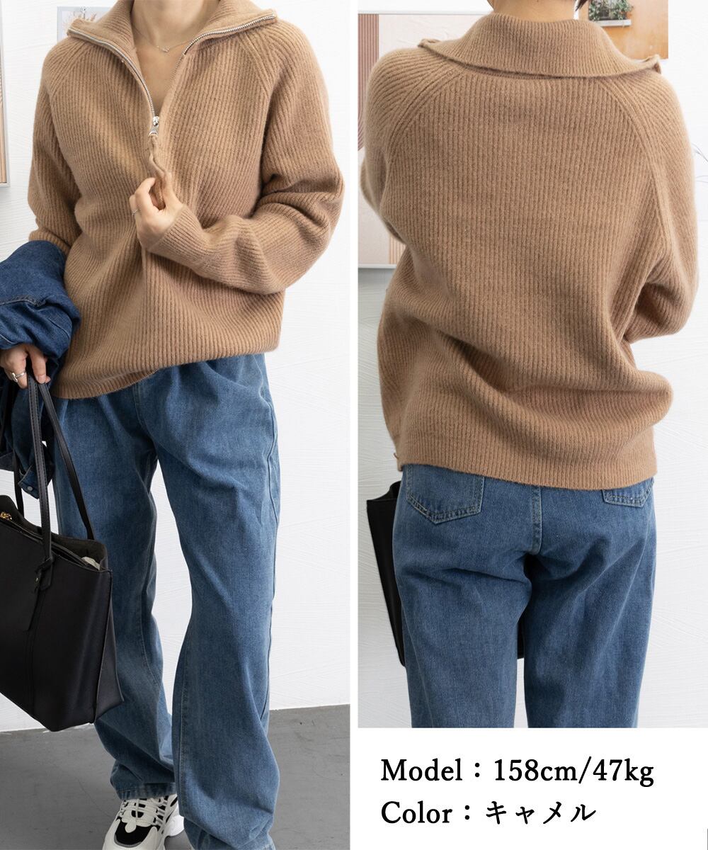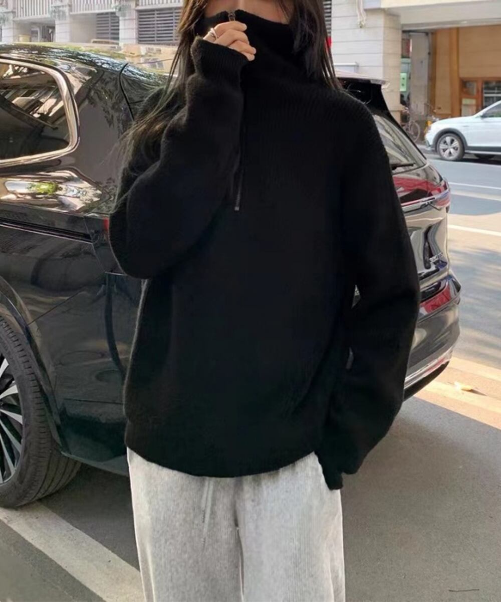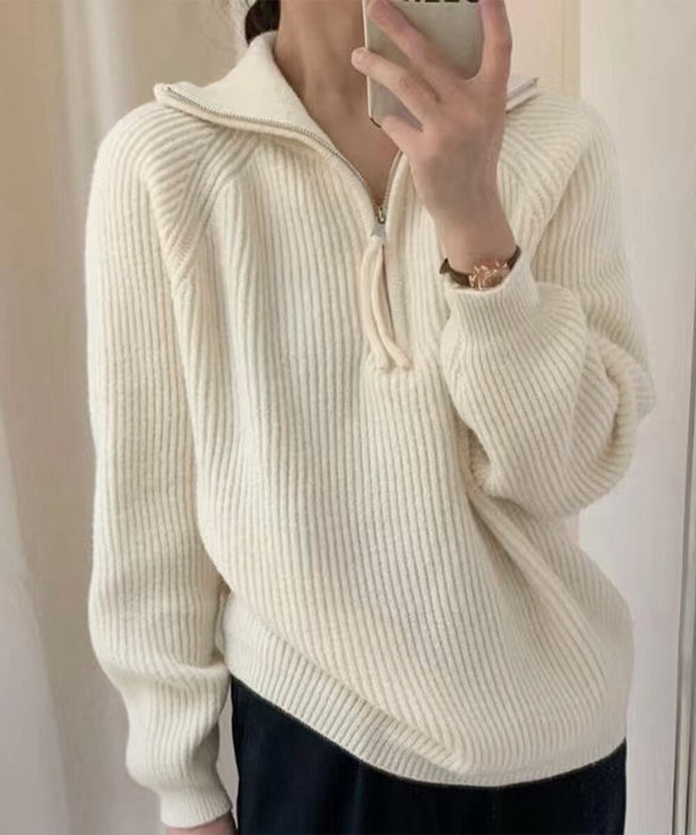 トレンドのハーフジップがアクセントになったニットセーター