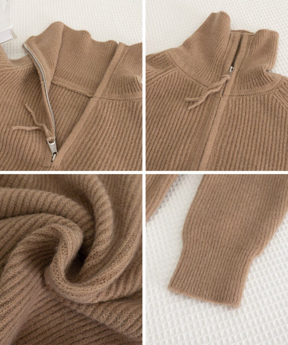 ジップを閉めればハイネックスタイル、開ければ襟付きニットに変身!どちらもおしゃれに着こなせる2WAYデザイン