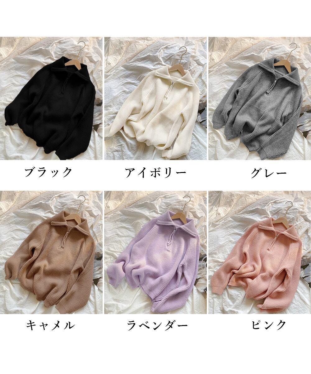 【日本倉庫即納】 ハーフジップニットセータースタンドカラー