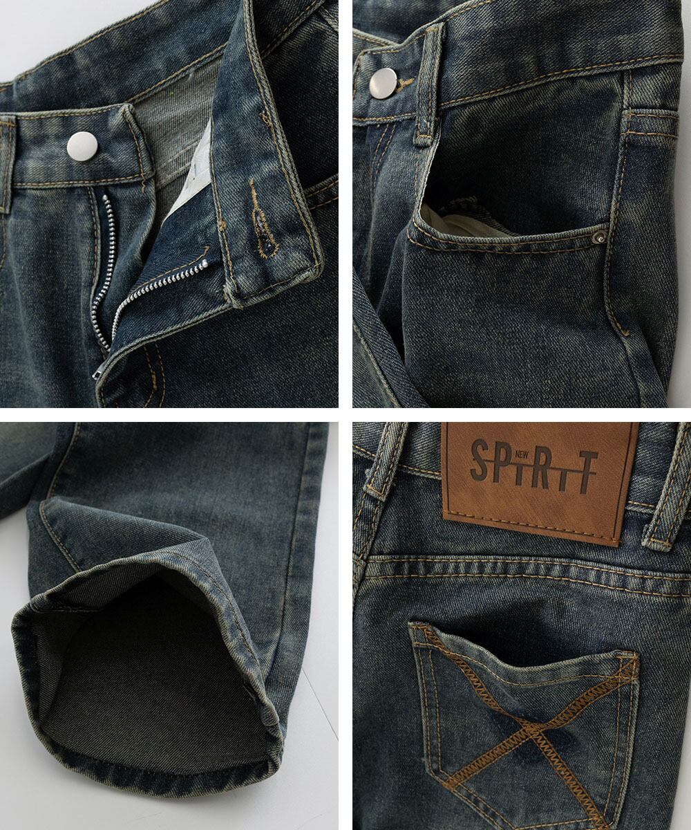カジュアルジーンズ ユーズド加工デニム 体型カバー ズボン