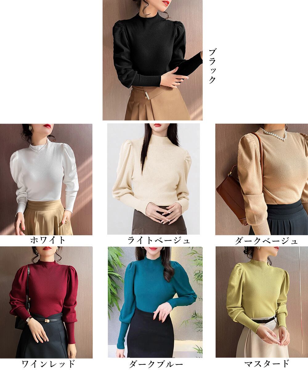 【日本倉庫即納】 ニットセーターパフスリーブニットトップス