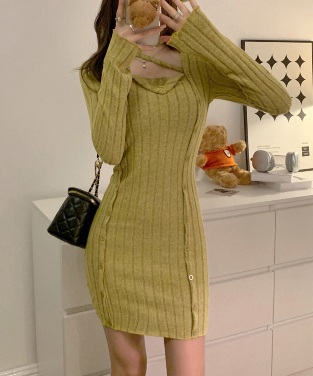 【日本倉庫即納】 タイトミニニットワンピースホルターネック
