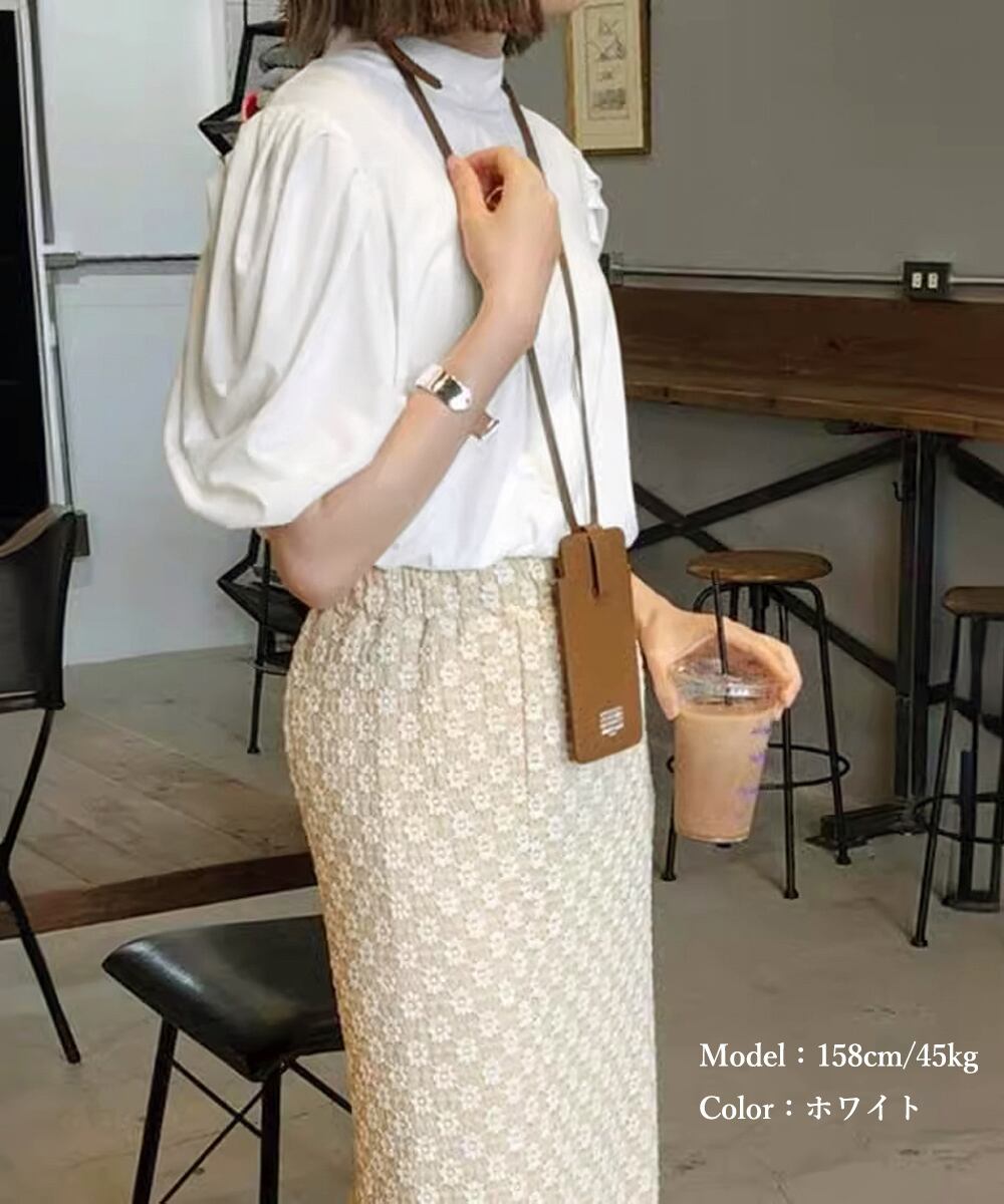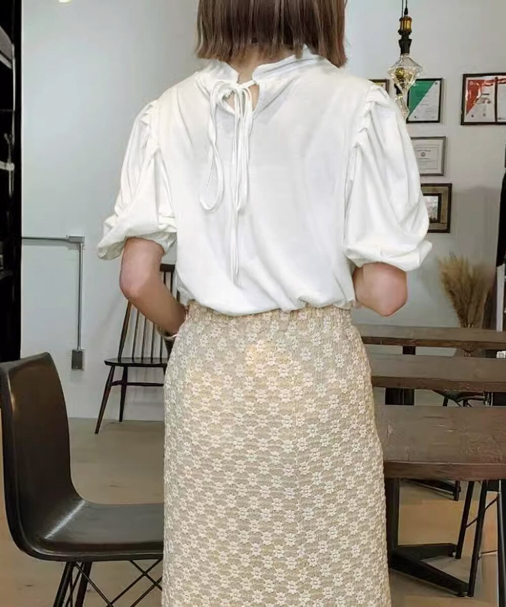 コットントップス白 タックスリーブ夏服 フェミニン服可愛い
