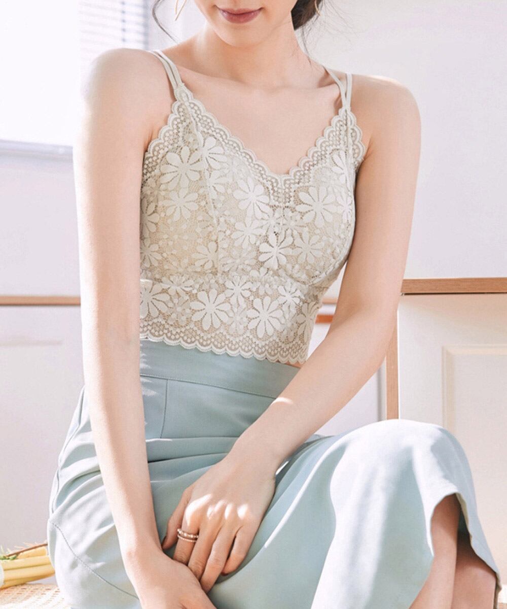 【日本倉庫即納】 総レースキャミソールカップ付きブラトップ