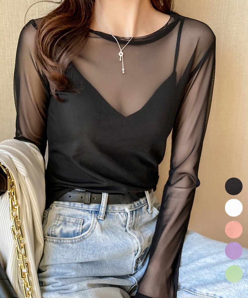 インナー トップス 軽い 春夏秋お洒落 シースルーブラウス