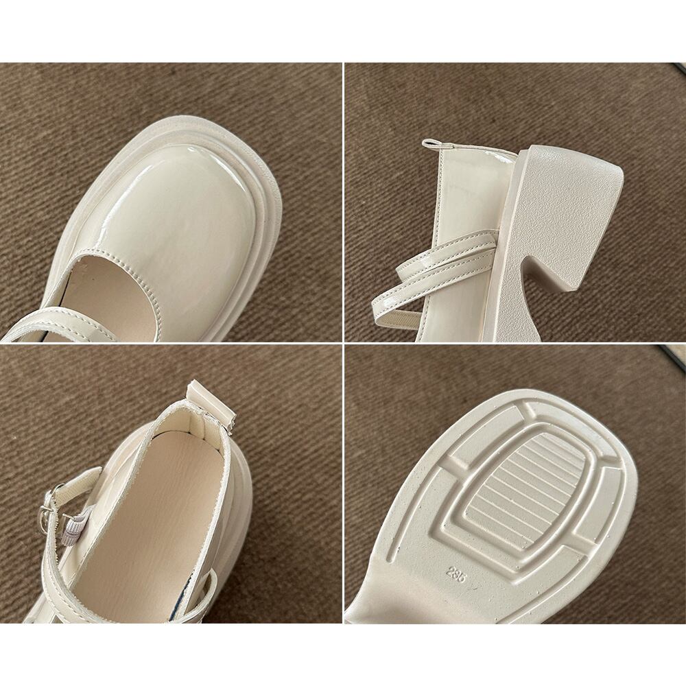 ストラップパンプス 厚底ローファー靴 フェイクレザーくつ