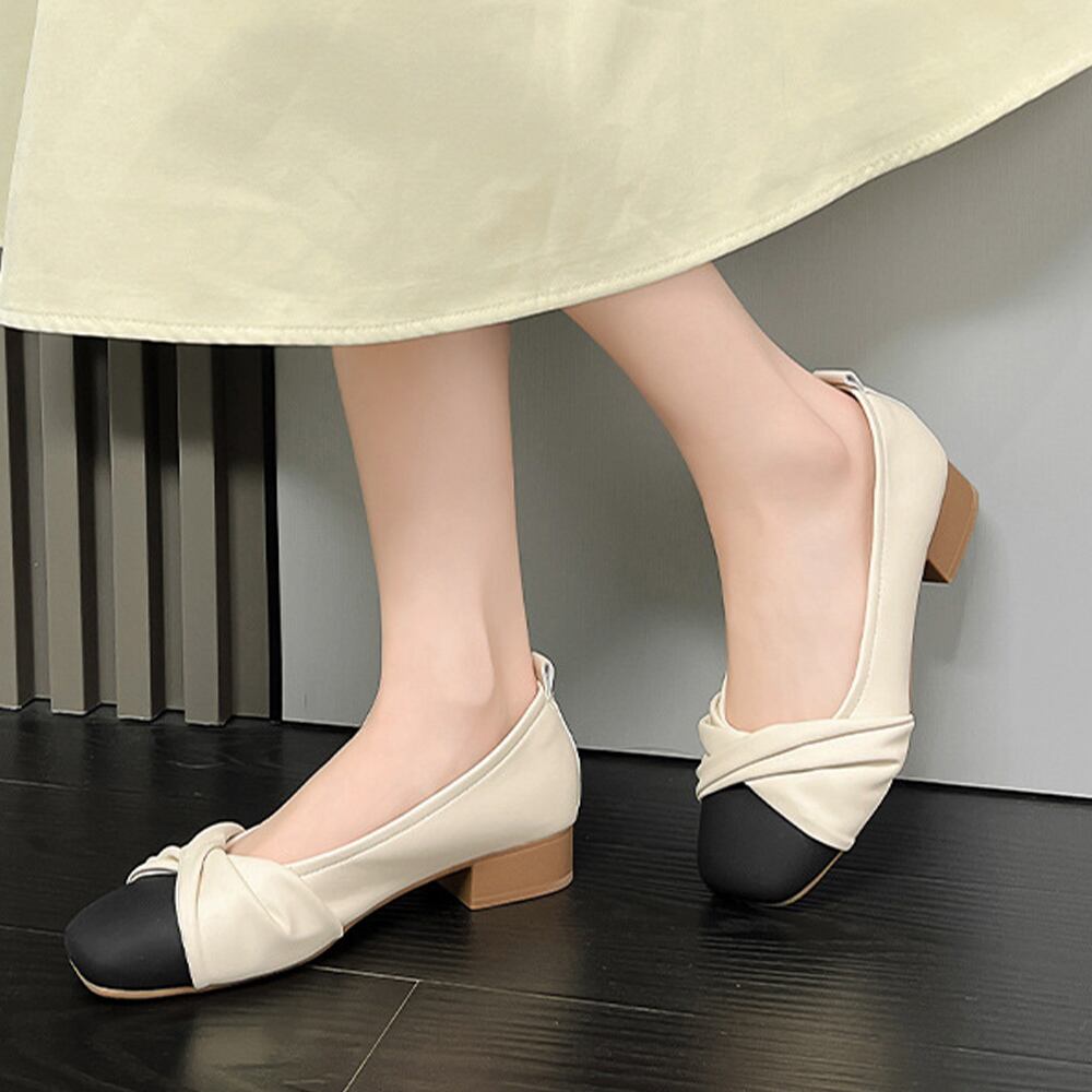 ローヒールシューズ スクエアトゥ 配色 エレガント 痛くない 歩きやすい きれいめ お洒落 大人 フェミニン