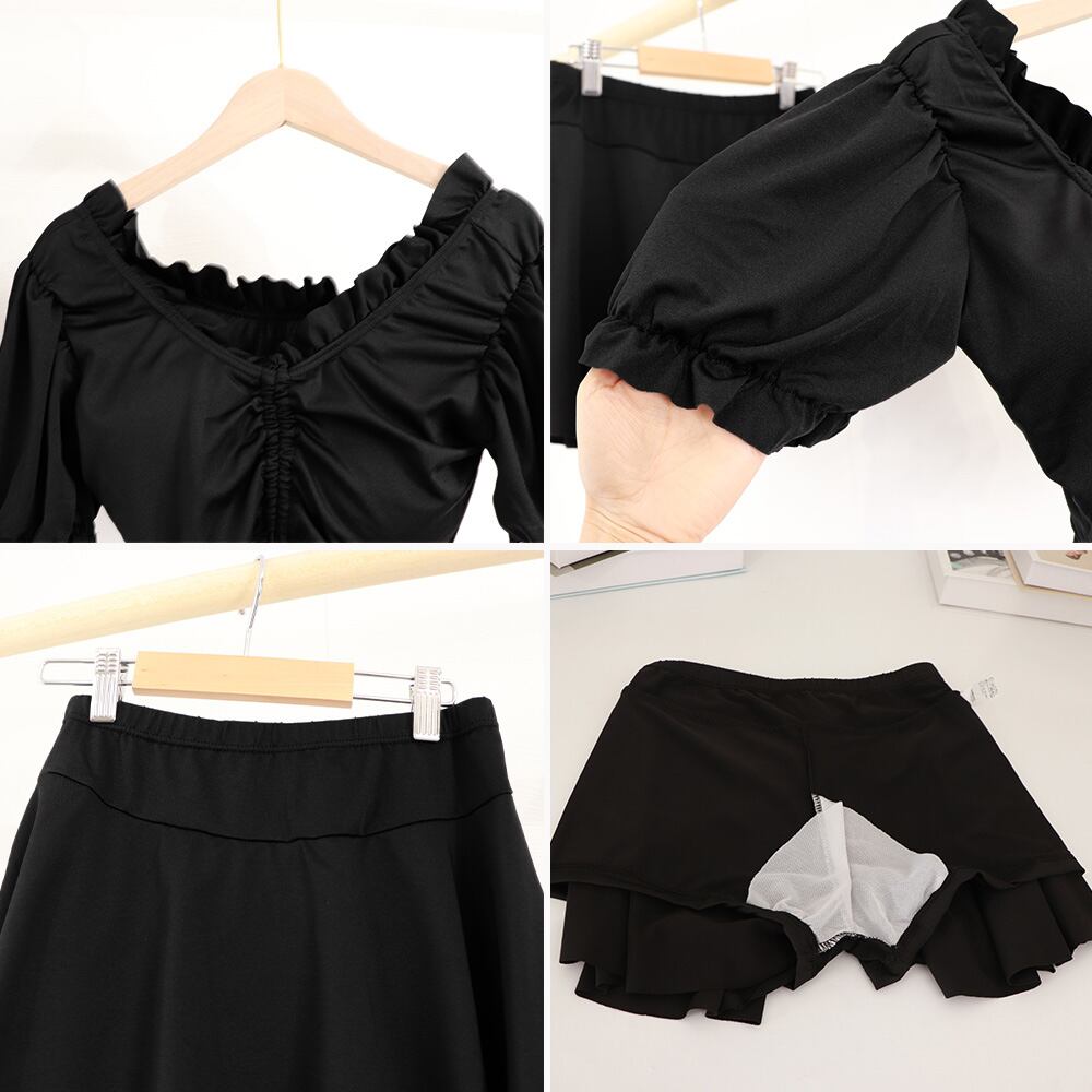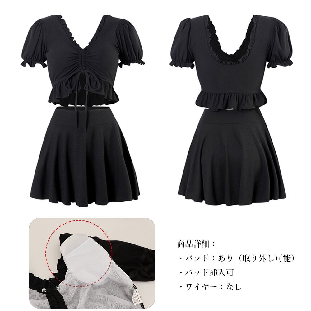 レースアップ水着2点セット 大人ガーリー セパレート水着 パンツ付きミニスカート 露出控えめビーチウェア 夏 海 海水浴