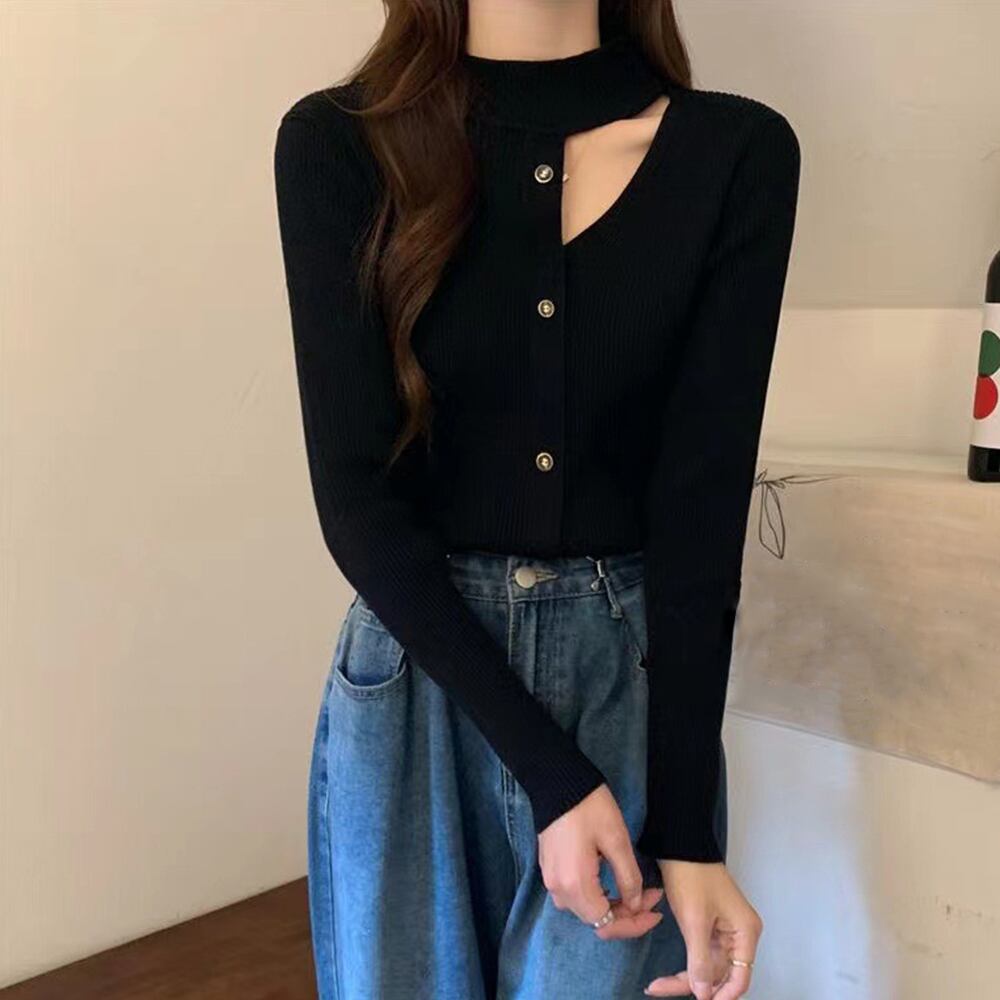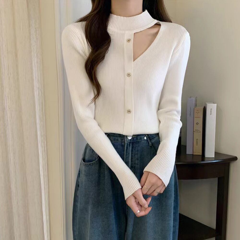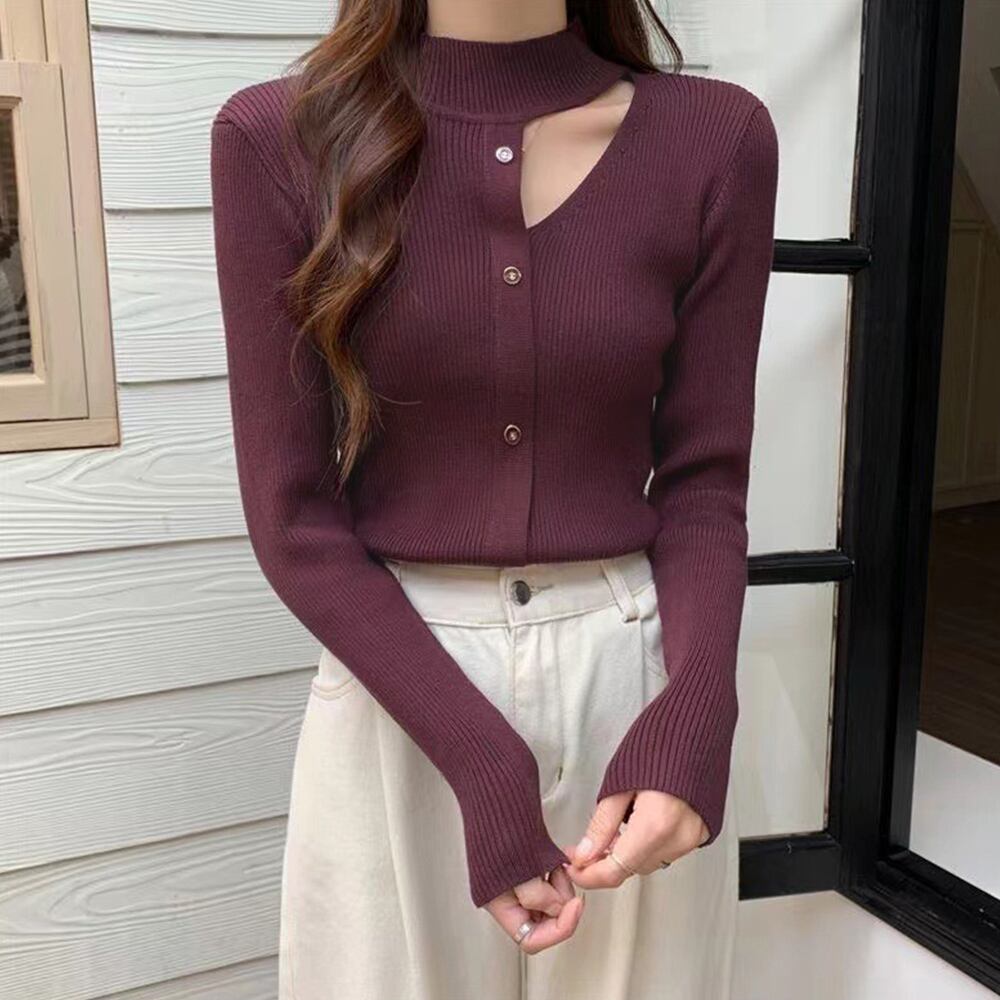 ほんのり色気を匂わせるフロントオープンが魅力的なニットトップス