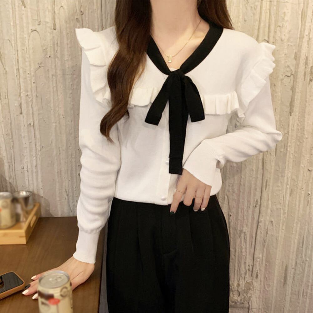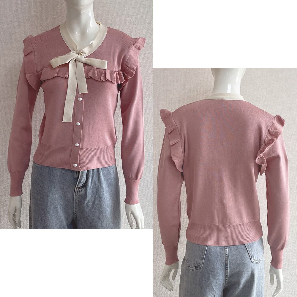 フロントのリボンが可愛らしいニットトップス