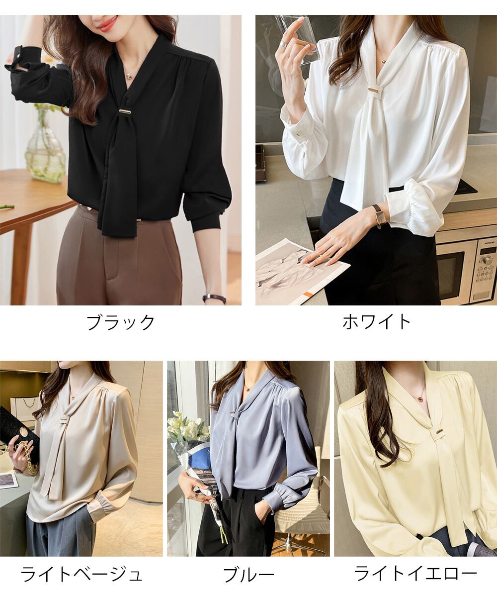 韓国上品 スカーフタイブラウス オフィスカジュアル トップス 大人女性 とろみシャツ通勤長袖シャツブラウス 30代40代