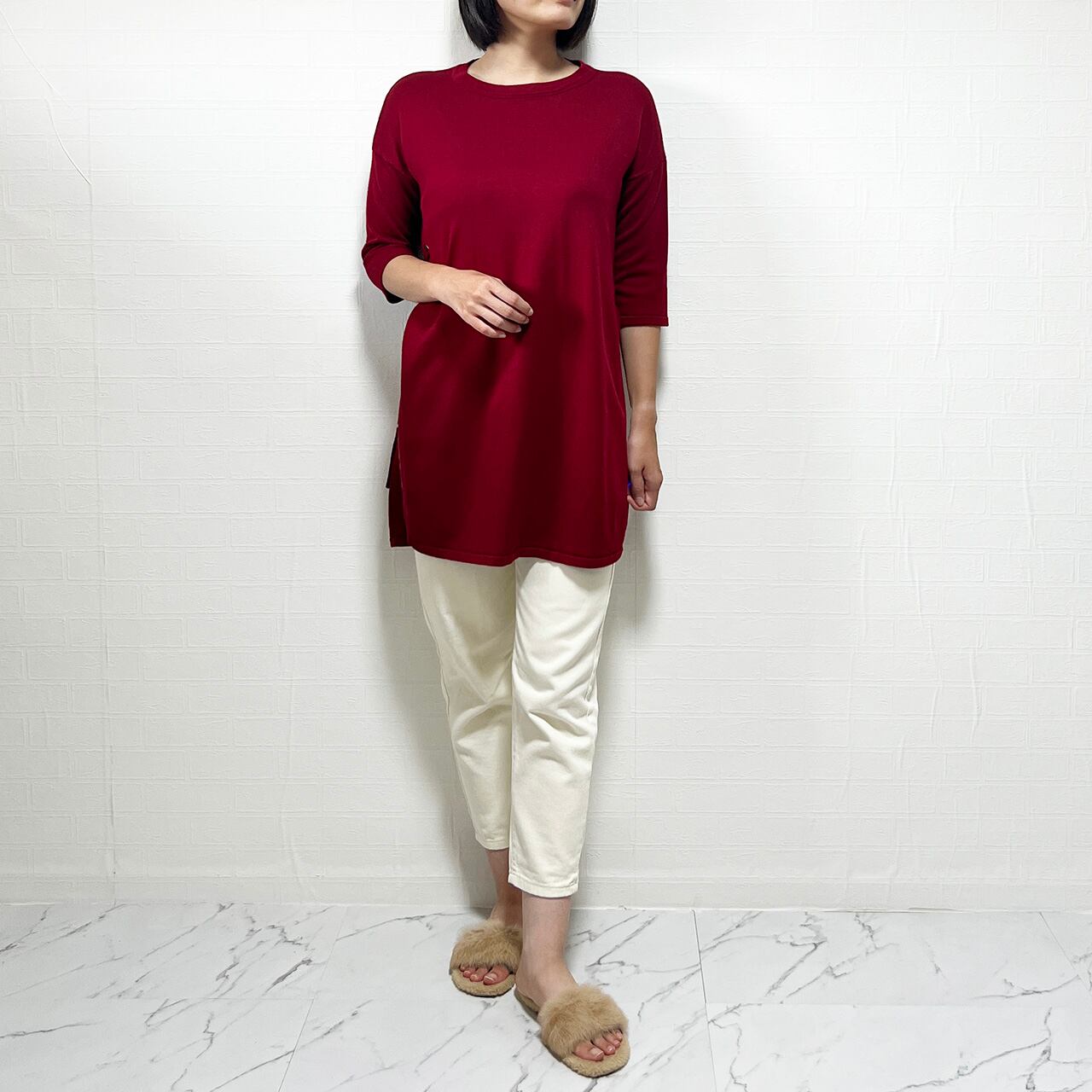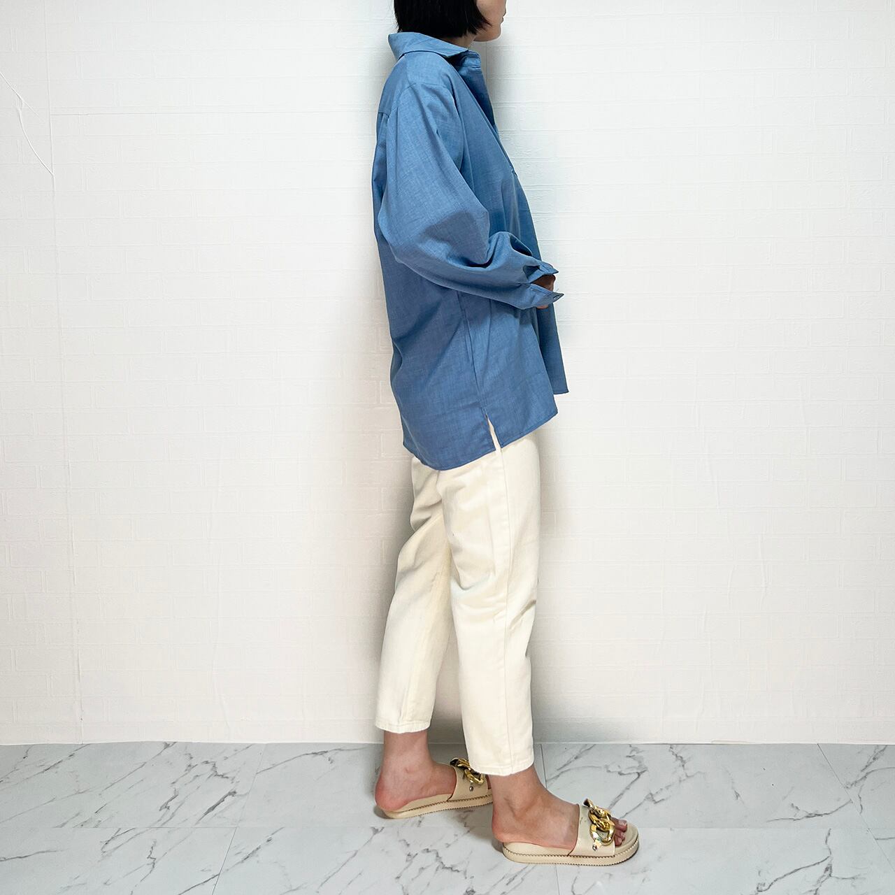 生地にはほどよい伸縮性があり、着心地も快適です。デニムの生地はやや薄手で、夏から秋にかけてのシーズンにぴったりです。また、このパンツはロング丈の7分丈デザインで、足元をスッキリと見せてくれます。そのため、お出かけやカジュアルなシーンに最適です。