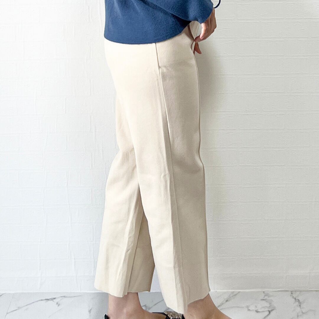 ニットパンツ レディースパンツ ウエストゴム 美シルエットパンツ センタープレス 美脚パンツ クロップド丈 秋冬 サイズ豊富