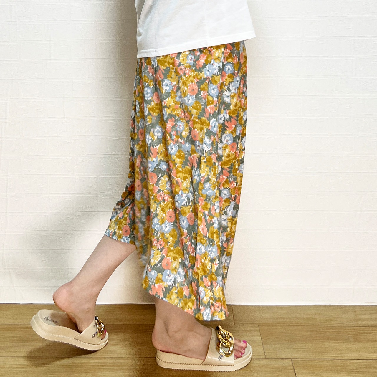 明るく華やかな印象の、春夏にぴったりの花柄フレアスカートが登場しました。