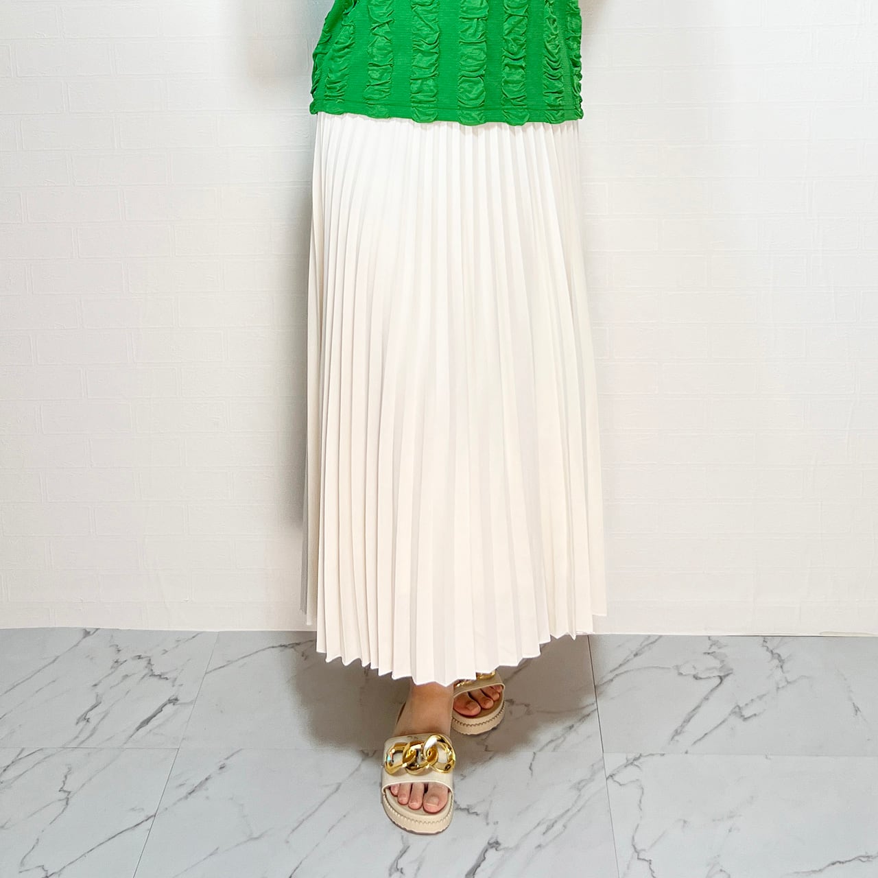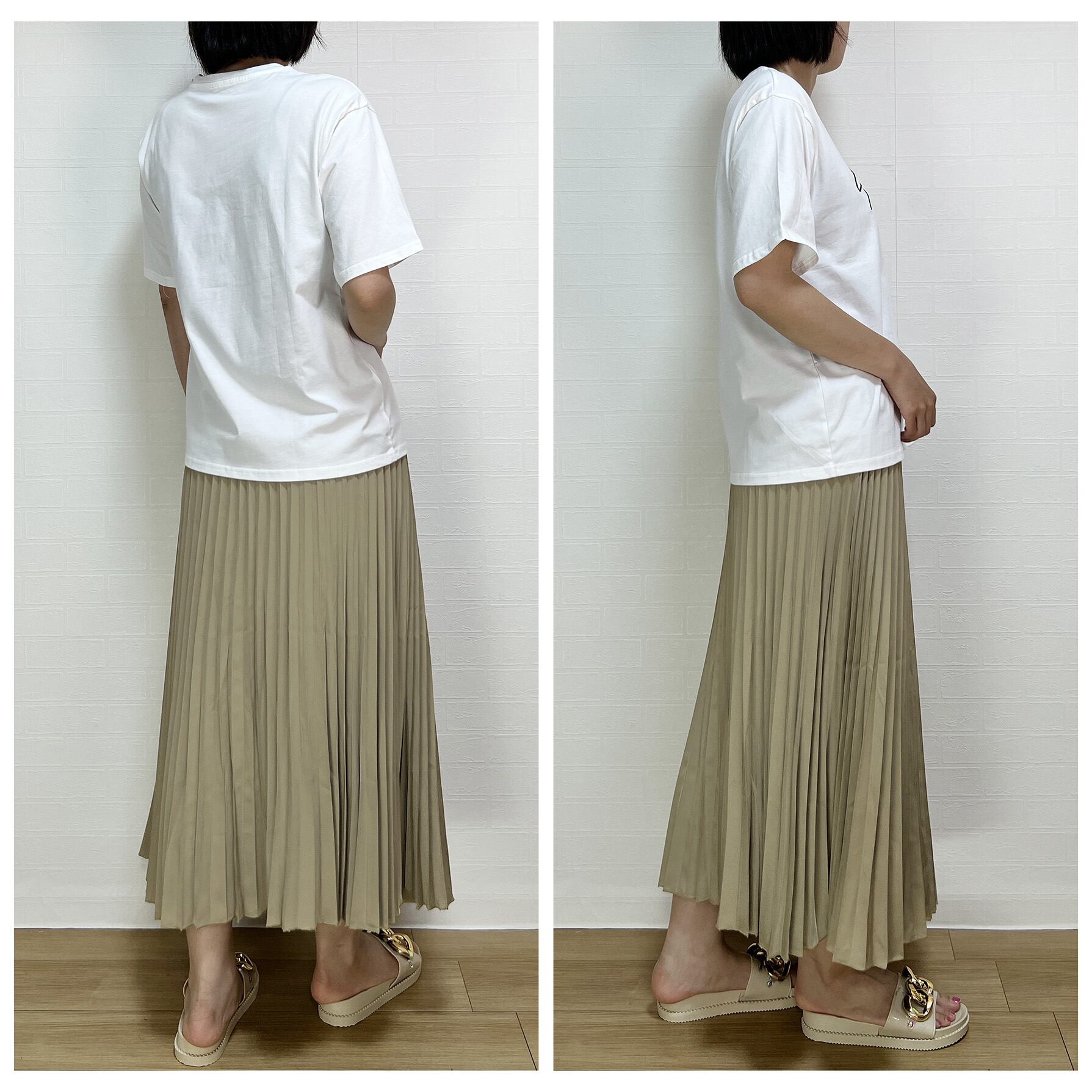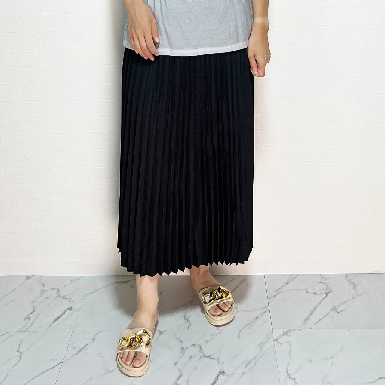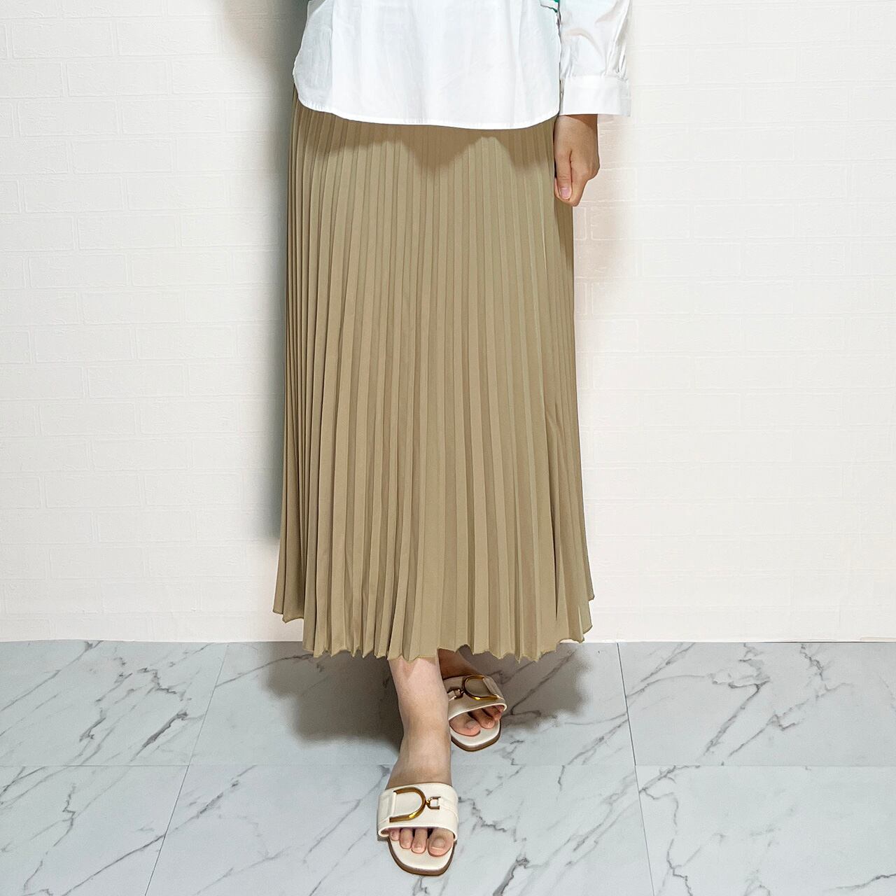 スカート プリーツロング ウエスゴム インポート フレアスカート 落ち感綺麗 ベージュ キャメル ブラック