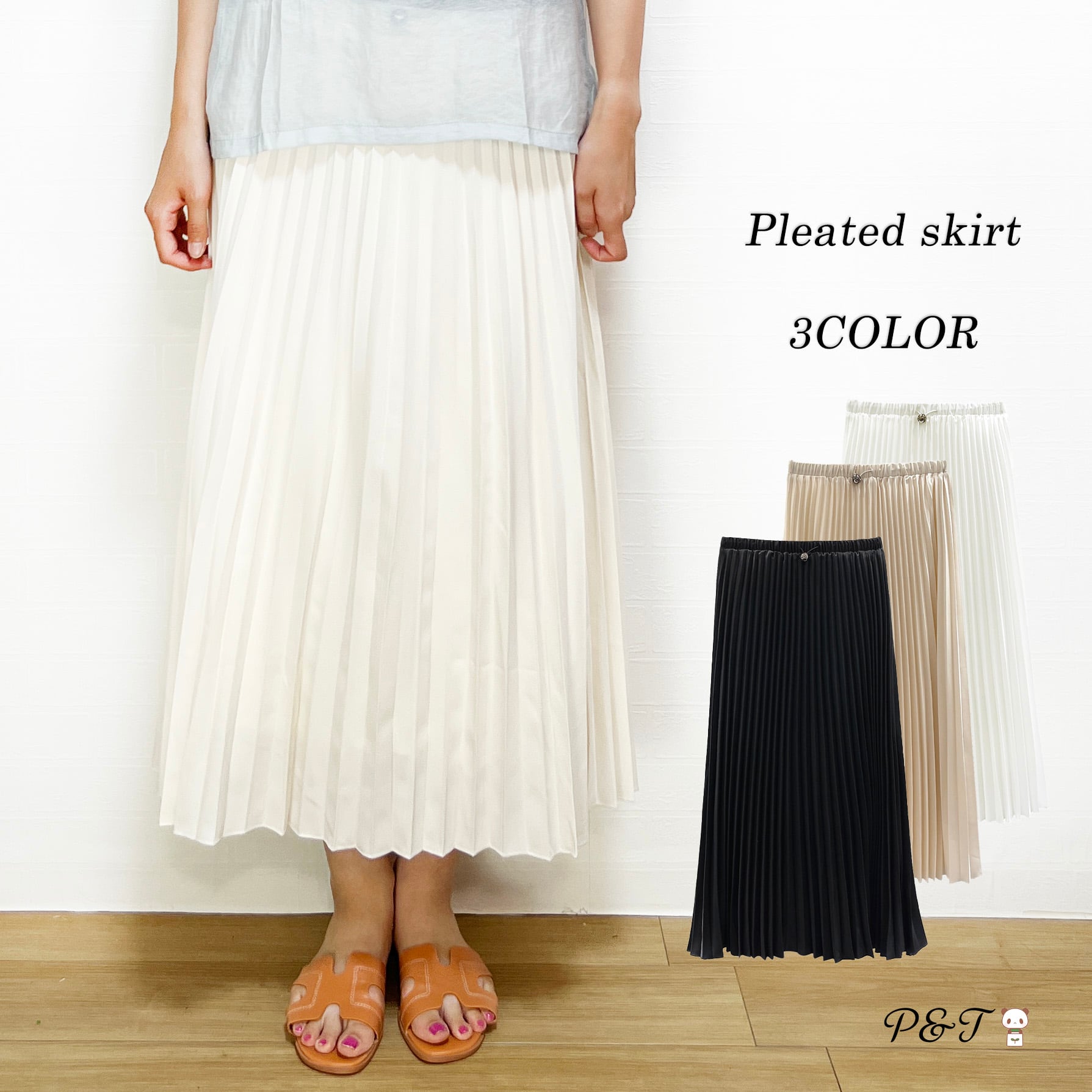P&Tから新登場のこのプリーツスカートは、落ち感が美しく、ウエストゴムで極上の履き心地を実現しています。ポリエステル製でしわになりにくいため、長時間の着用でも美しい状態がキープされます。裏地もあり透ける心配は一切なし。独特なプリーツデザインが脚をスッキリと見せ、カジュアルから上品なコーディネートまで幅広く対応。ベージュ、キャメル、ブラックの3色展開で、あなたのスタイルにマッチする色がきっと見つかります。