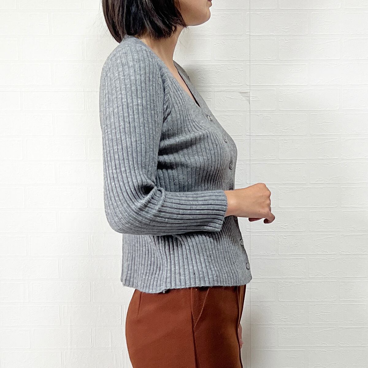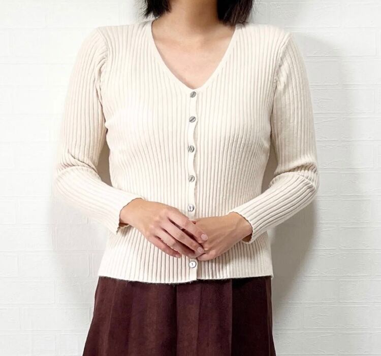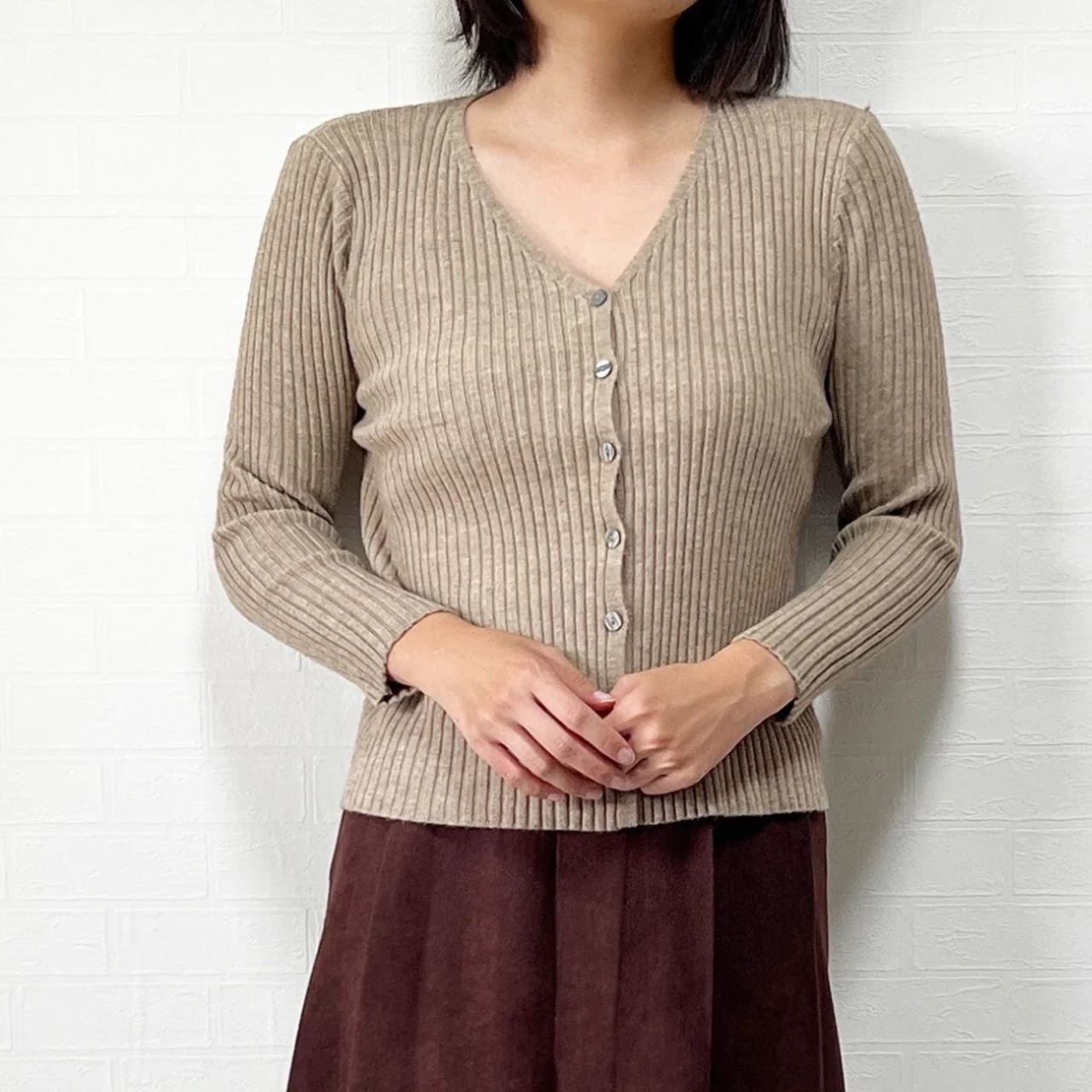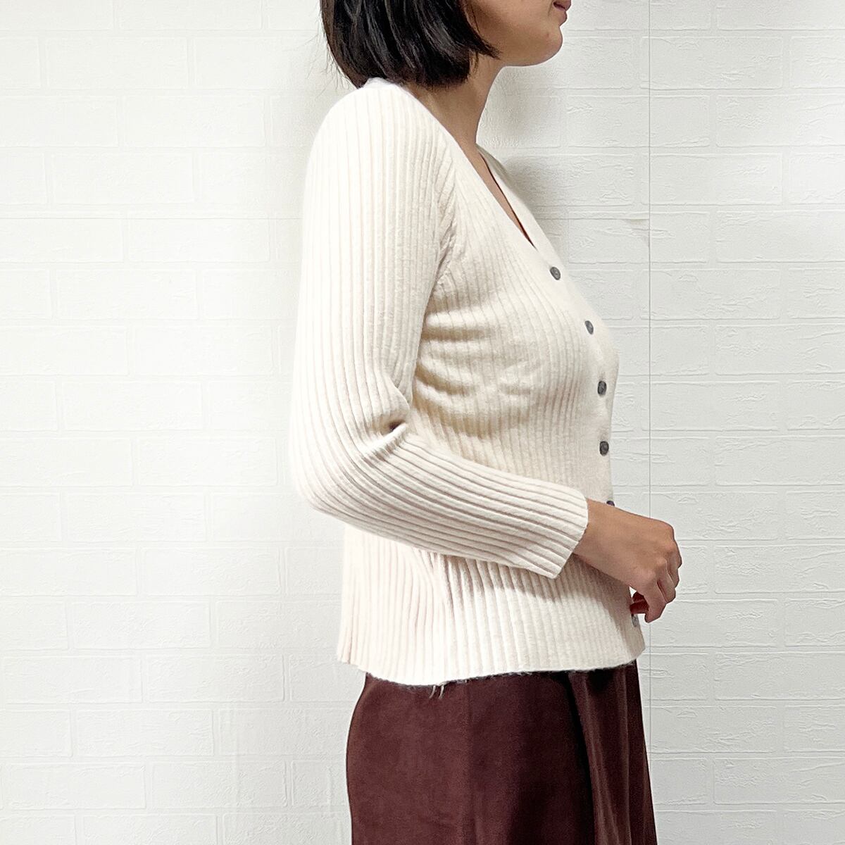 リブ仕立てのセーターは、体にほどよくフィットし、着るだけで美しいシルエットを作り出します。一枚で着用してもおしゃれさが際立ち、そのまま羽織としても活用できます。着丈も腰丈ぐらいの長さで、バランスが取りやすく、普段使いから通勤まで幅広く着回せるアイテムです。