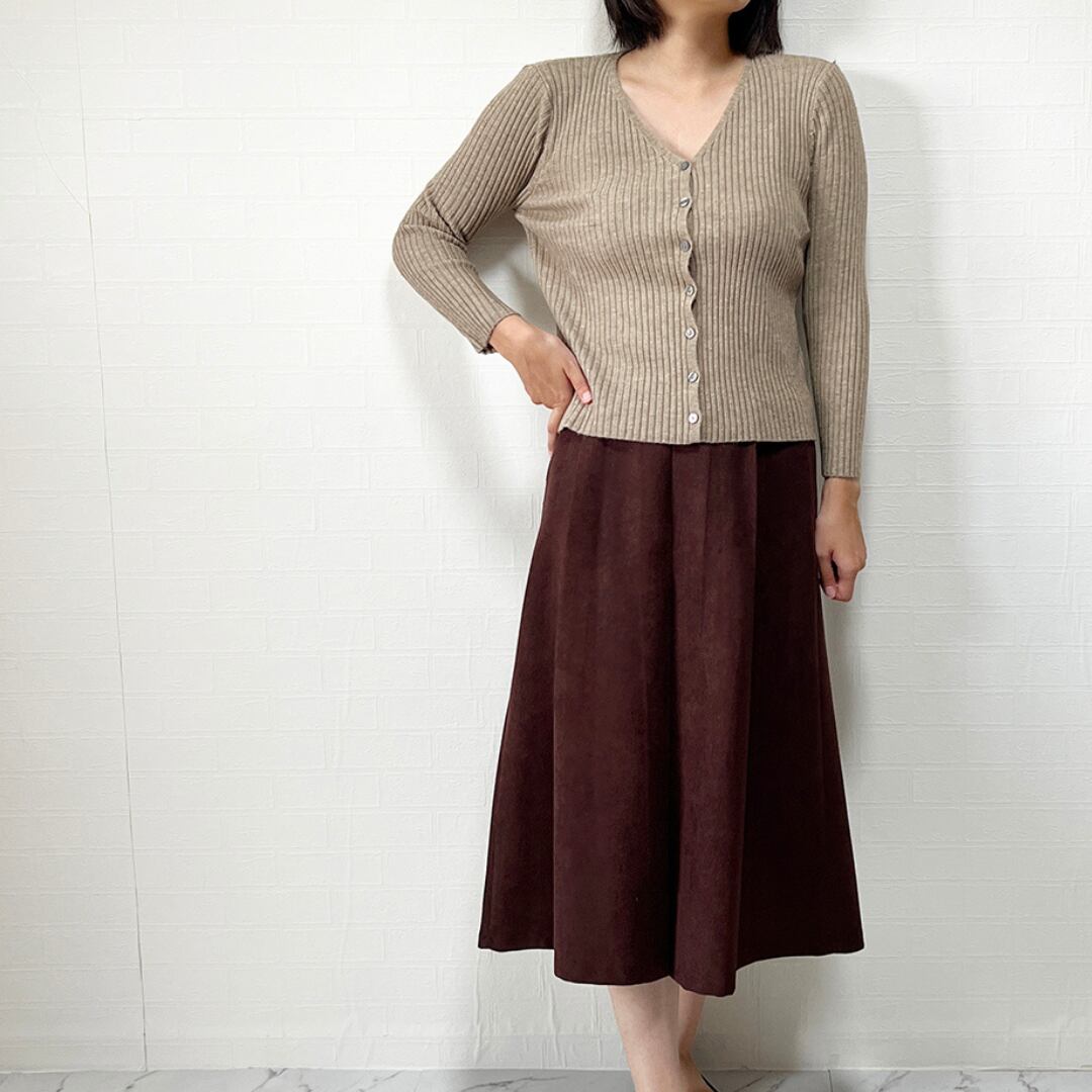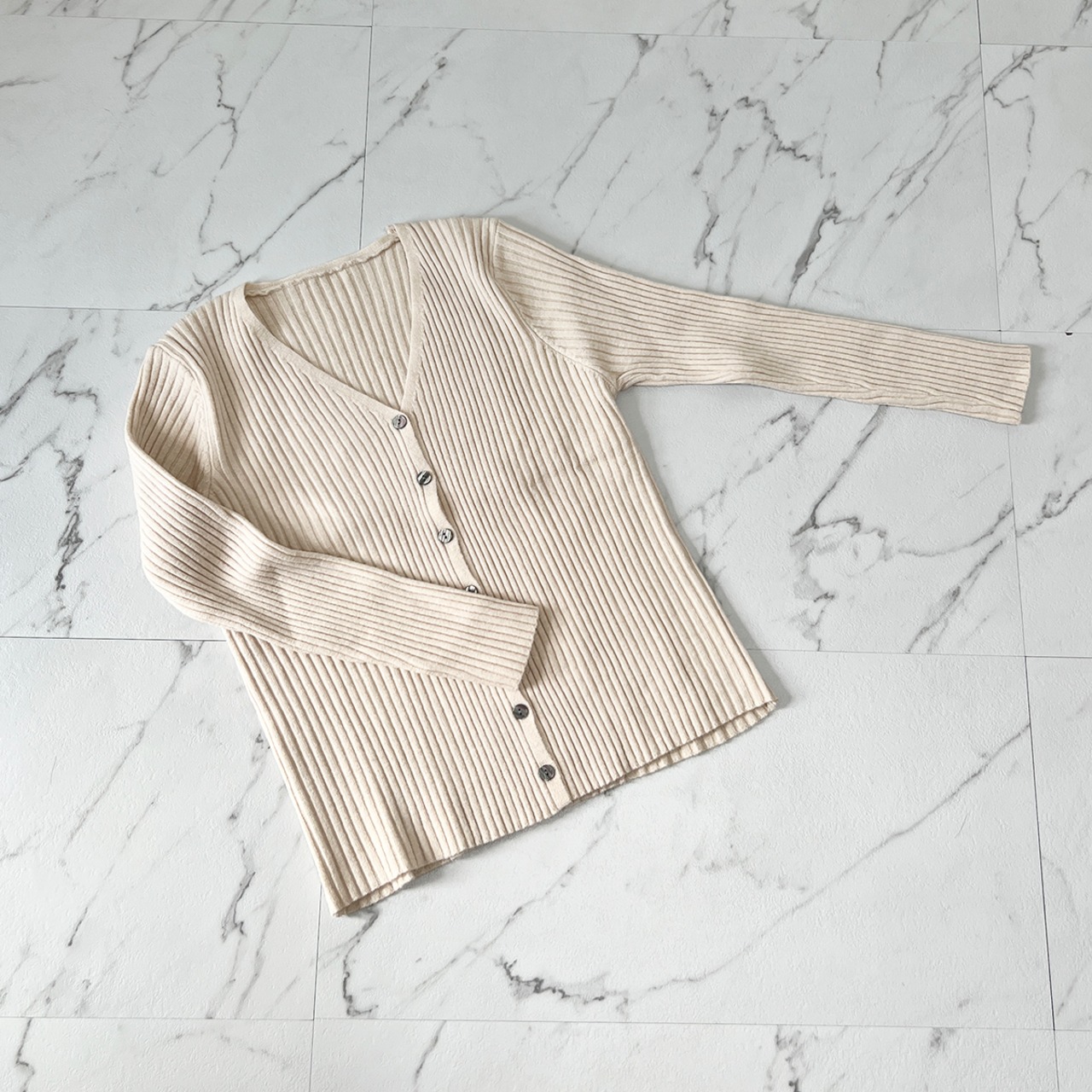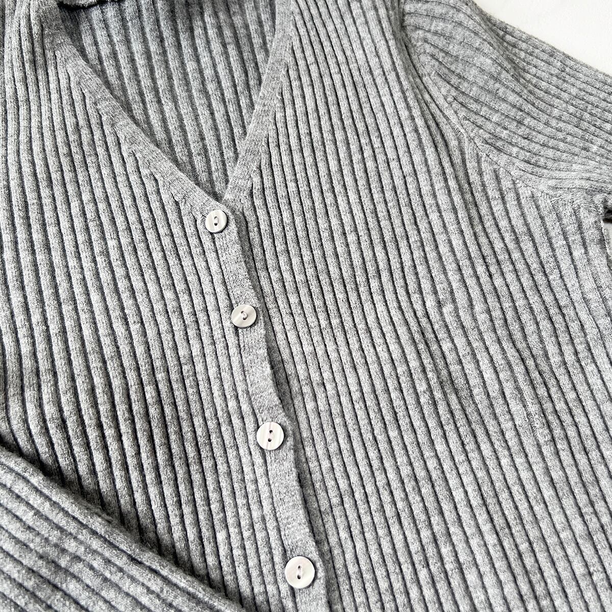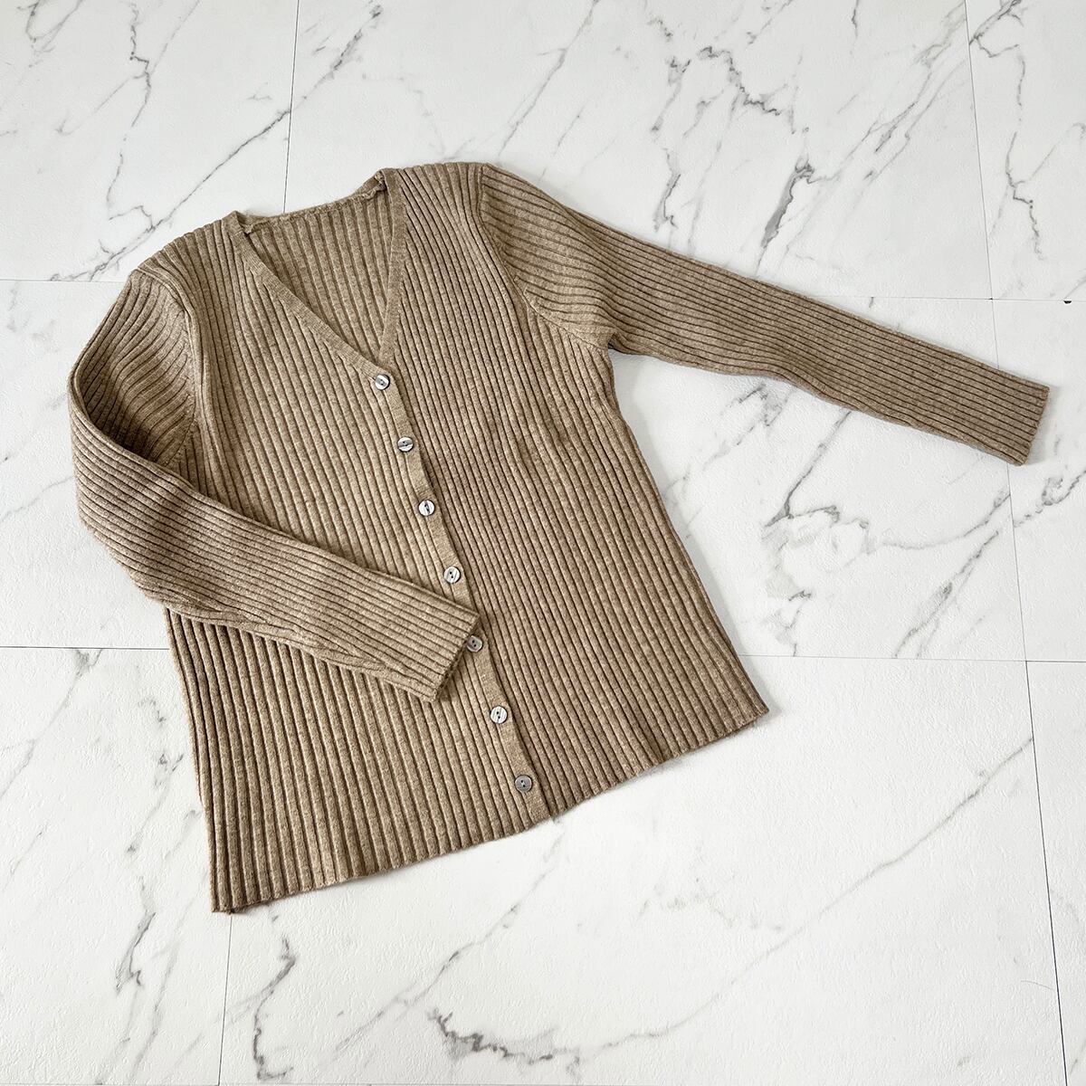 リブ仕立てのセーターは、体にほどよくフィットし、着るだけで美しいシルエットを作り出します。一枚で着用してもおしゃれさが際立ち、そのまま羽織としても活用できます。着丈も腰丈ぐらいの長さで、バランスが取りやすく、普段使いから通勤まで幅広く着回せるアイテムです。
