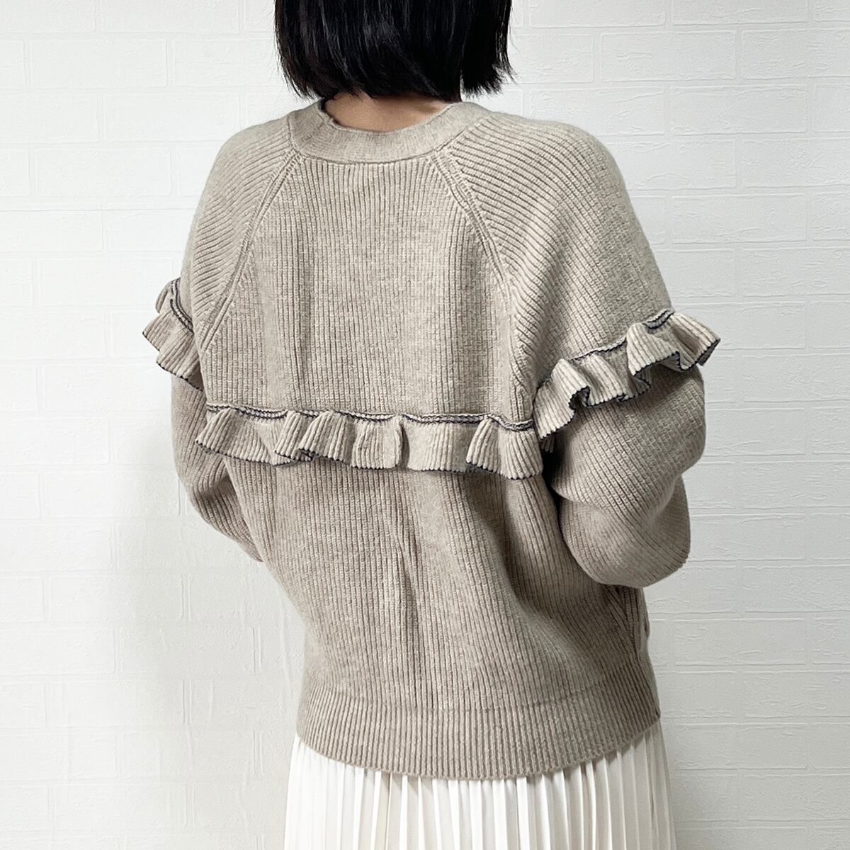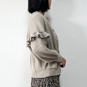 この肉厚フリルニットカーディガンは、袖周りから背中部分にかけてフリルが特徴の1枚です。しっとりとした肌触りの優しいニット素材を使用し、カジュアルさの中に上品さを兼ね備えたデザインです。甘すぎないので、大人の女性にもピッタリです。