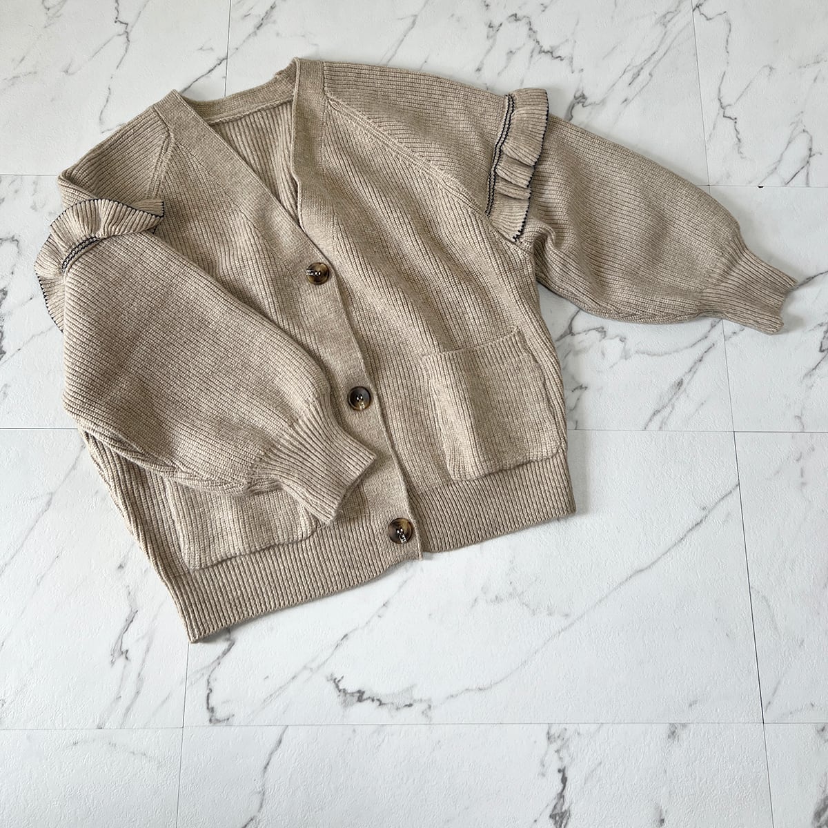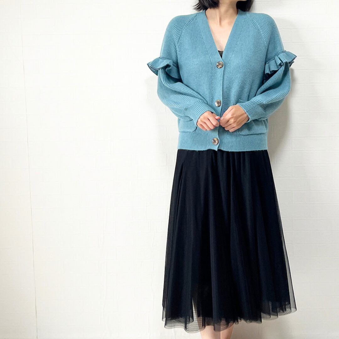 ニットカーディガン 新作 羽織り レディーストップス 長袖カーディガン フリルカーディガン デザインカーディガン 可愛い おしゃれ