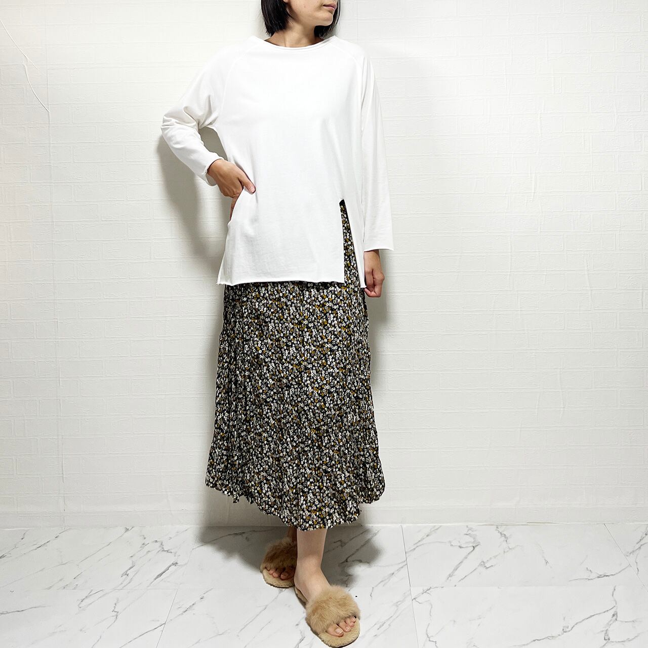 洗練されたデザインの花柄プリーツスカートがP&Tに登場しました。小さな花柄が大人カジュアルスタイルを演出してくれます。スカートの裾は適度にプリーツ加工されており、広がりすぎず、スッキリとした印象を与えます。