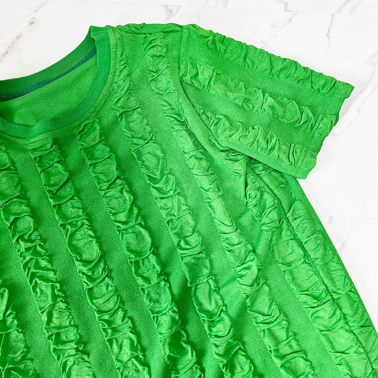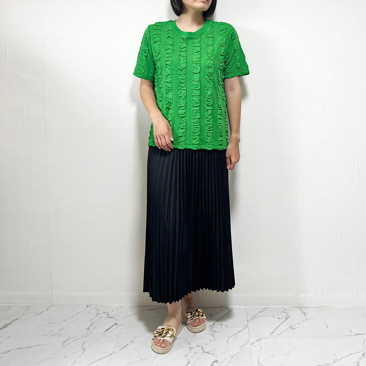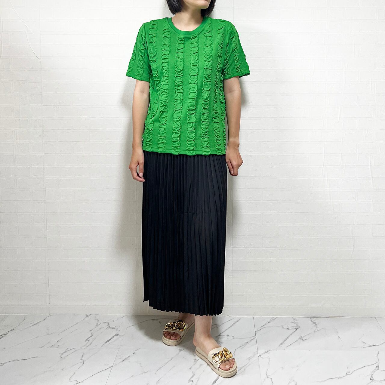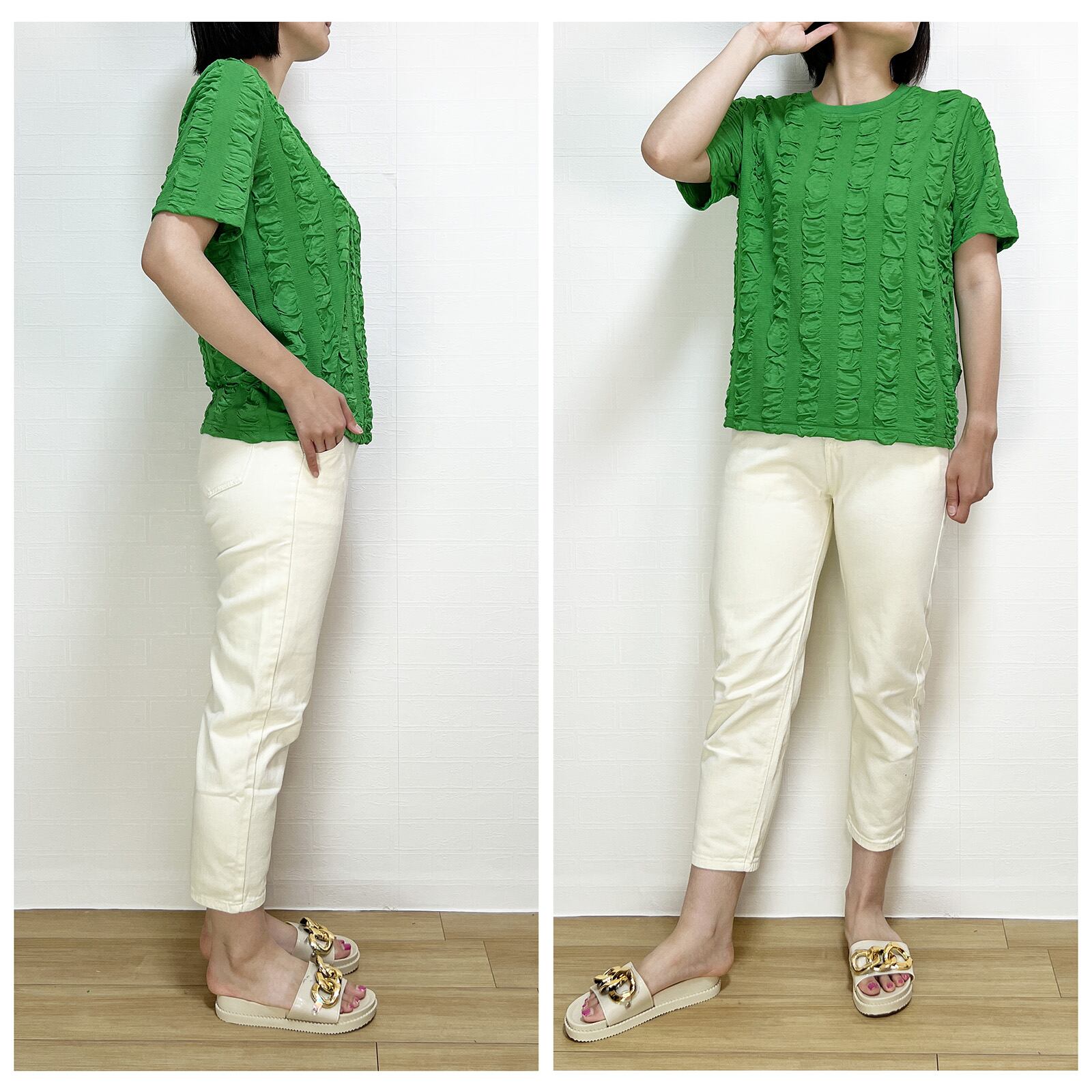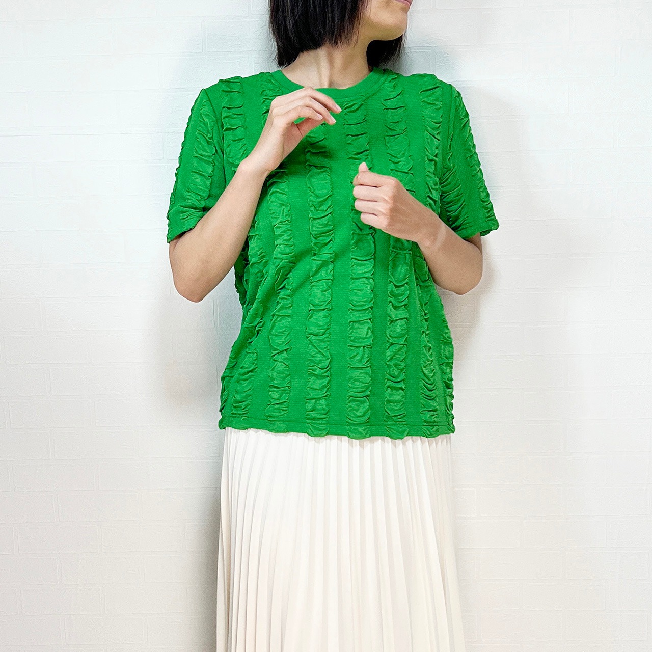 P&Tから、魅力的なデザインのトップスが登場しました。このトップスは、ゆったりとしたシルエットが特徴で、着心地の良さとトレンドのグリーンカラーが魅力です。シンプルなデザインなので、どんなスタイリングにも合わせやすく、大人のスタイルを引き立ててくれます。