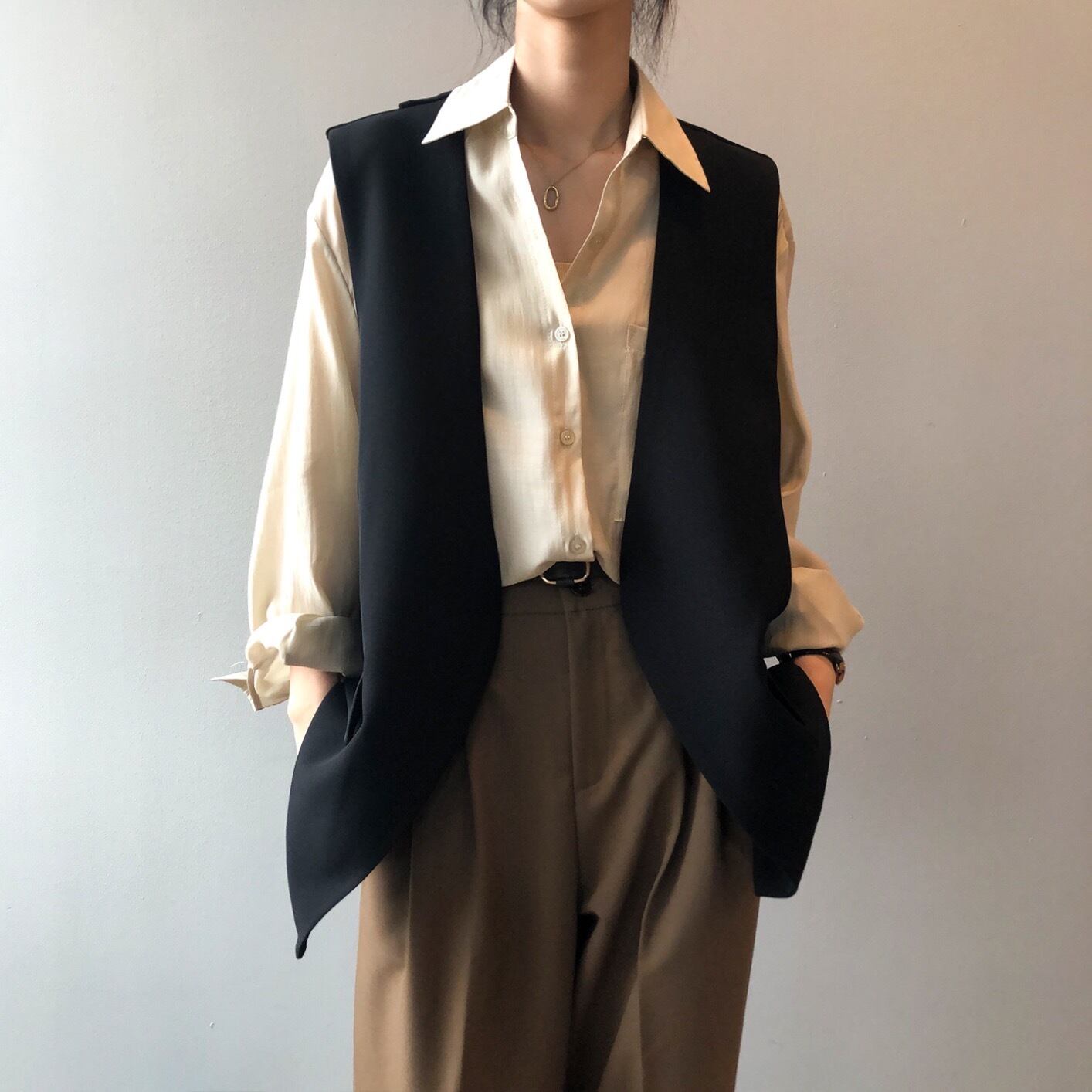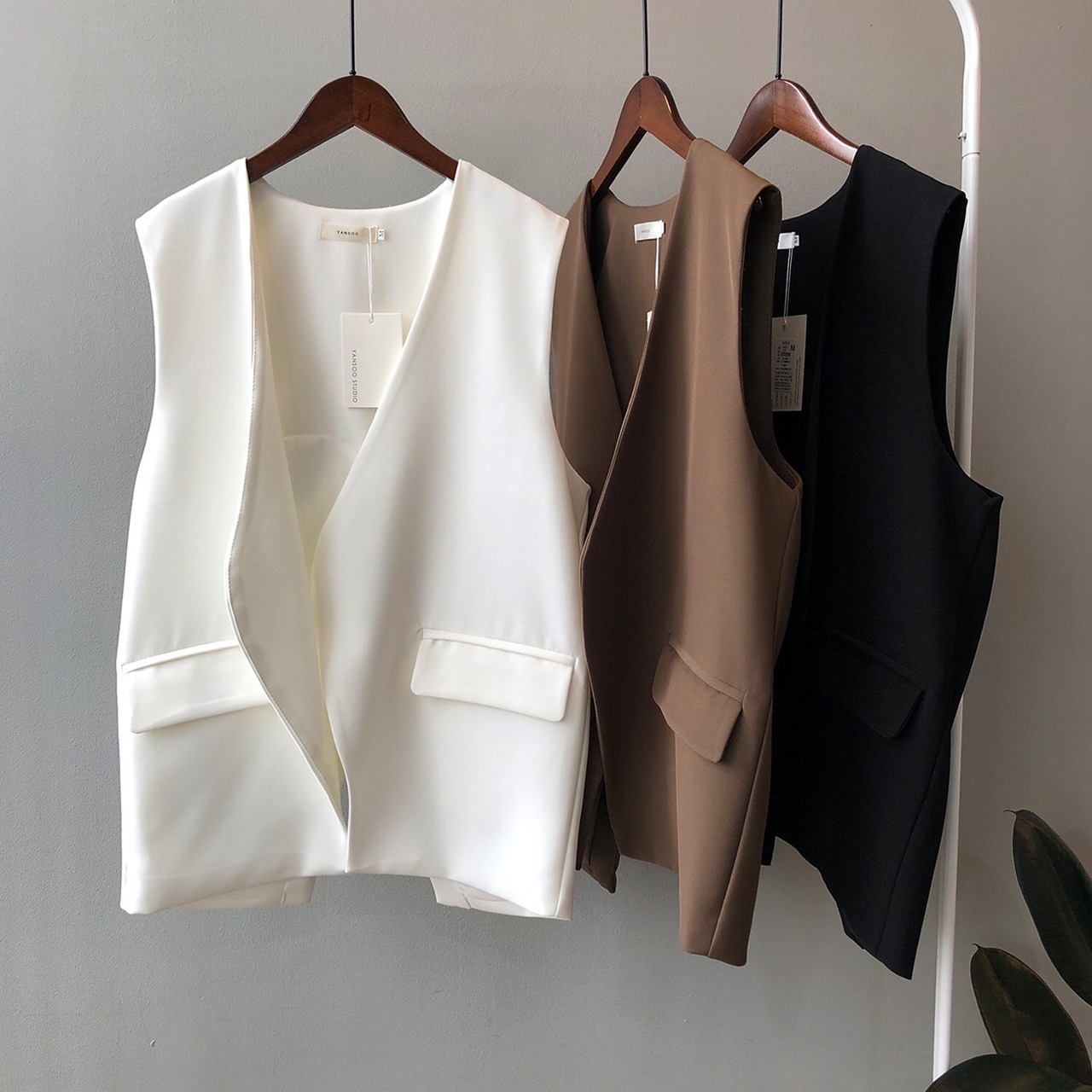このスタイリッシュなジレは、複数のコーディネートに取り入れやすく、春から夏にかけて活躍するアイテムです。ホワイトとブラックの色展開が、季節感やシーンに合わせたスタイリングを楽しむのに役立ちます。