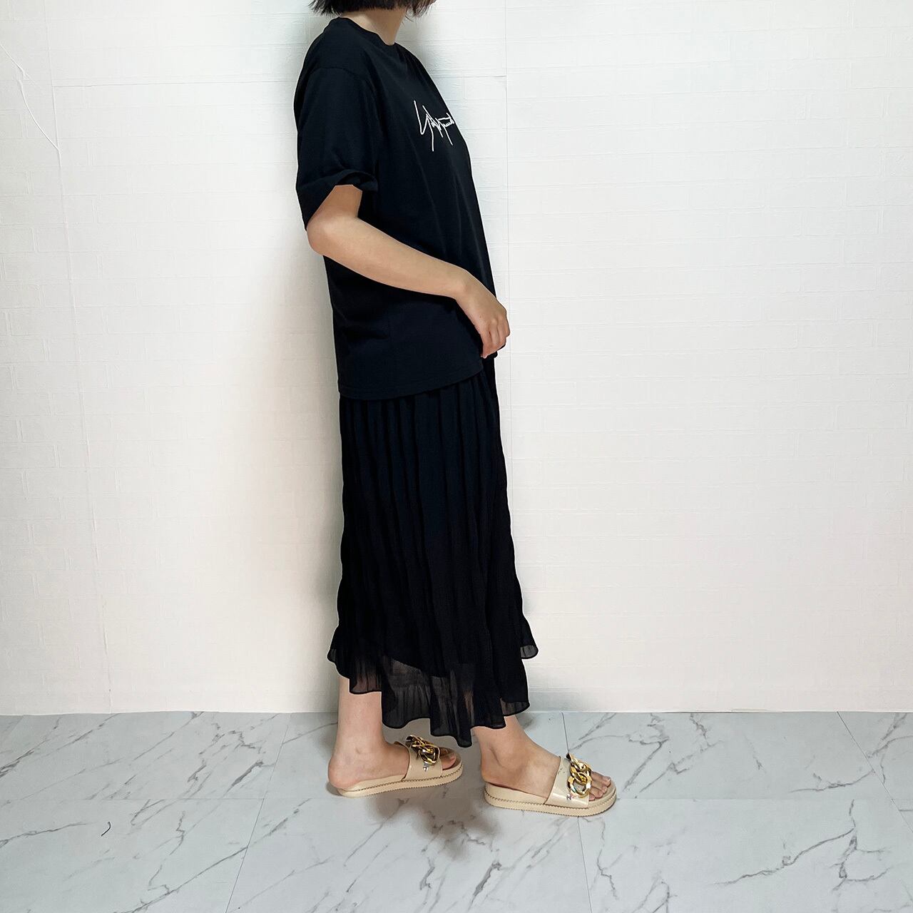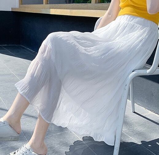 このウエストゴムスカートは、女性らしさを引き立てつつ、快適な着心地を提供します。シフォンスカートとして、春から夏にかけて幅広いシーンで活躍します。