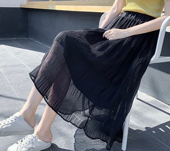 ウエストゴムスカート シフォンスカート スカート ひざ下スカート ホワイト ブラック