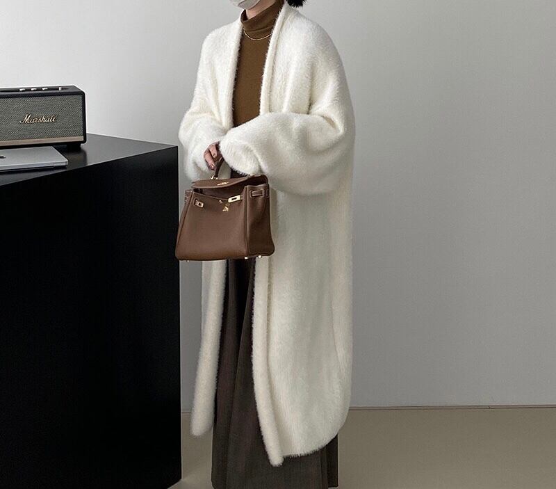 どんなボトムスにも合わせやすいトレンドのロングニットカーディガンです。