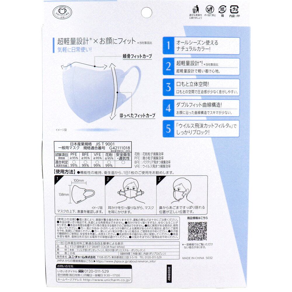 超快適マスク SMART COLOR スマートカラー パールホワイト ふつうサイズ 20枚入