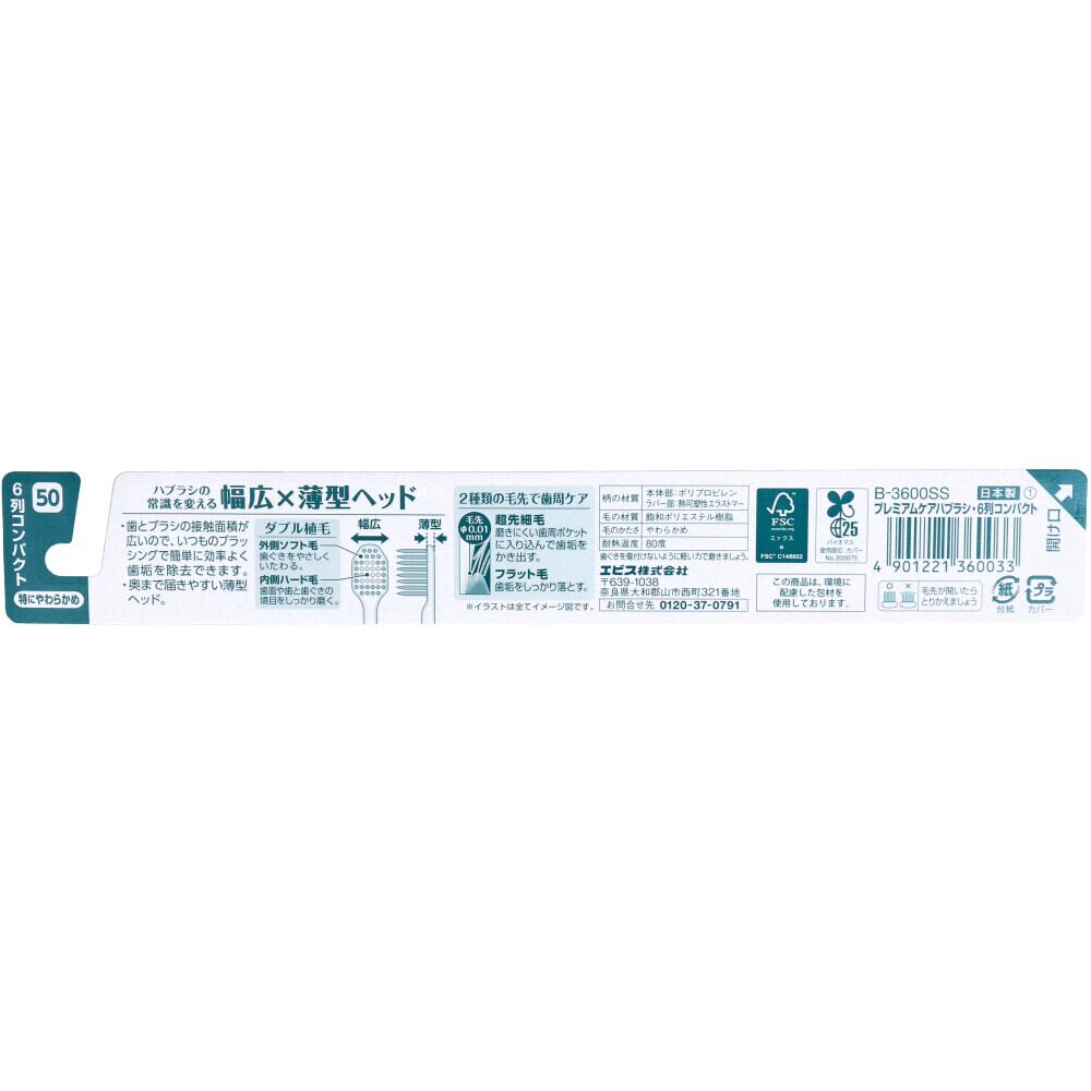 エビス プレミアムケアハブラシ 6列コンパクト 特にやわらかめ 1本入 B-3600SS