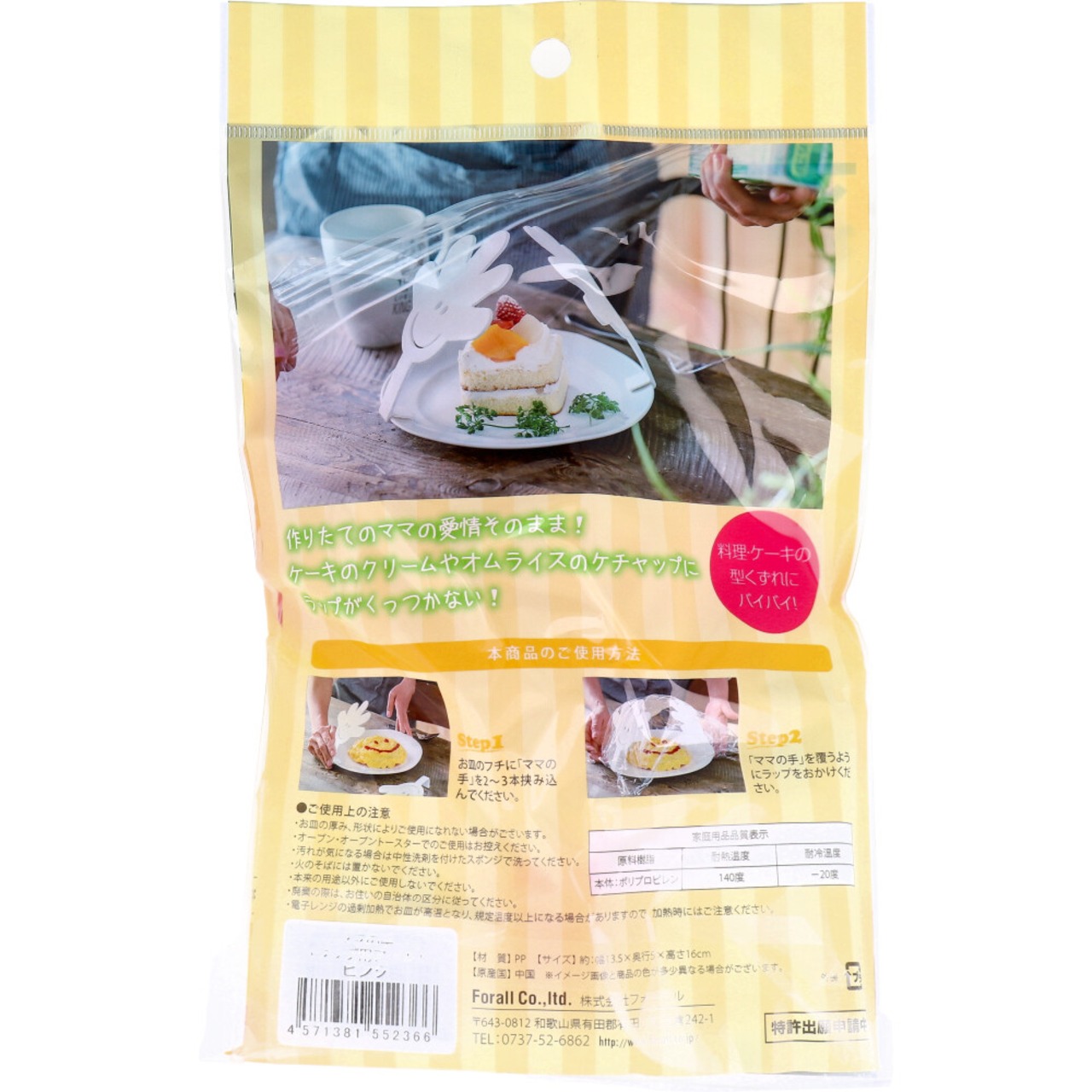オムライスのケチャップやケーキのクリームがラップにくっつくのを防ぎます。