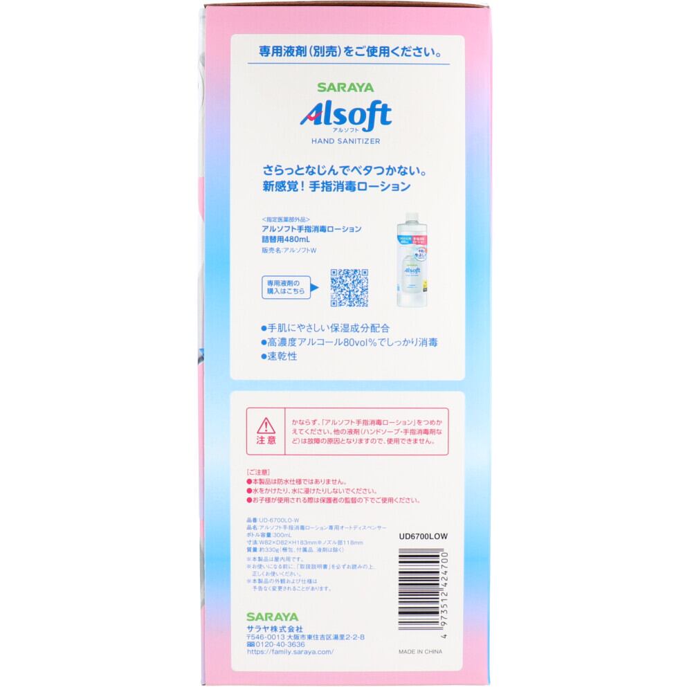 ★本製品は「アルソフト 手指消毒ローション」専用です。故障の原因となりますので、他の液剤は使用しないでください。※ハンドソープは使用できません。