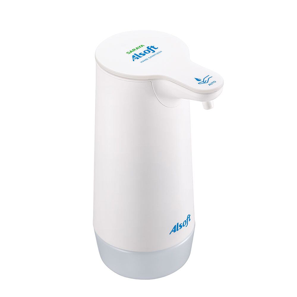 手をかざすことでセンサーが反応し、適量の消毒剤が吐出されるディスペンサーです。「アルソフト 手指消毒ローション」専用だから飛び散りにくく、毎日の消毒習慣にぴったり。
