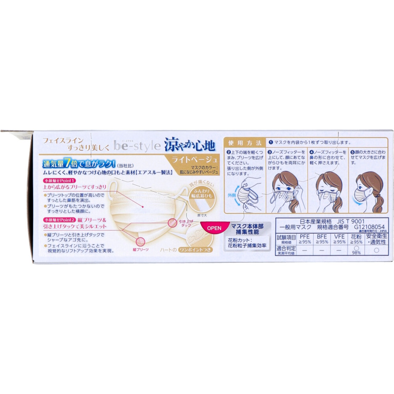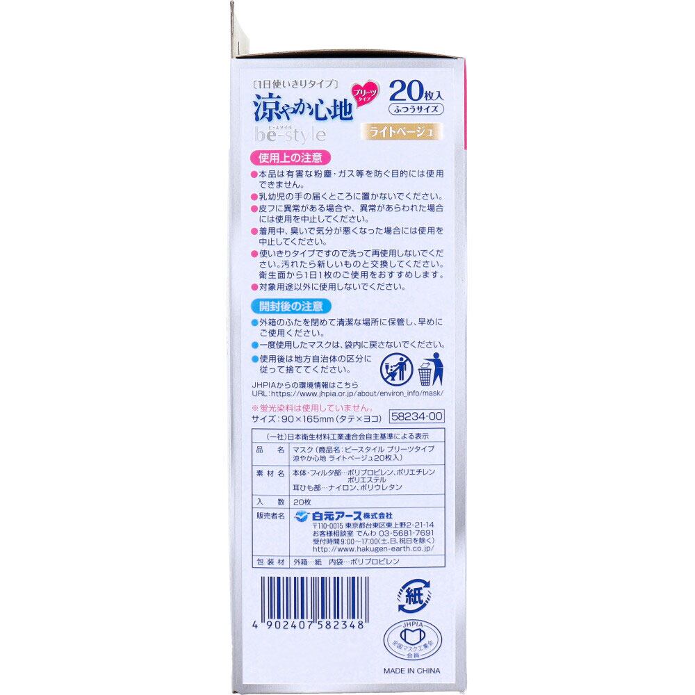 ビースタイル 小顔に魅せる 涼やか心地 プリーツタイプ ふつうサイズ ライトベージュ 20枚入