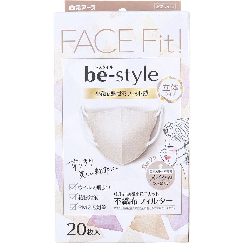 ビースタイル 立体タイプ ふつうサイズ ミルクティーベージュ 20枚入