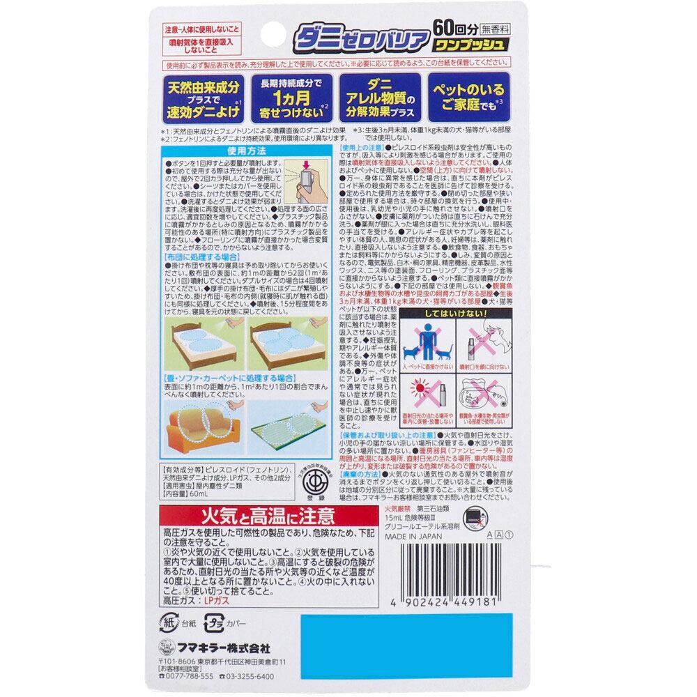 フマキラー ダニゼロバリア ワンプッシュ 60回分