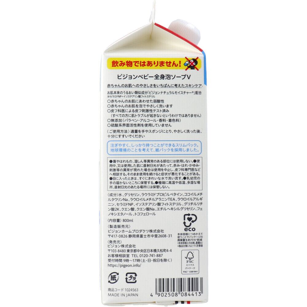 ピジョン ベビー全身泡ソープ 無香料 詰替用 2個分 800mL