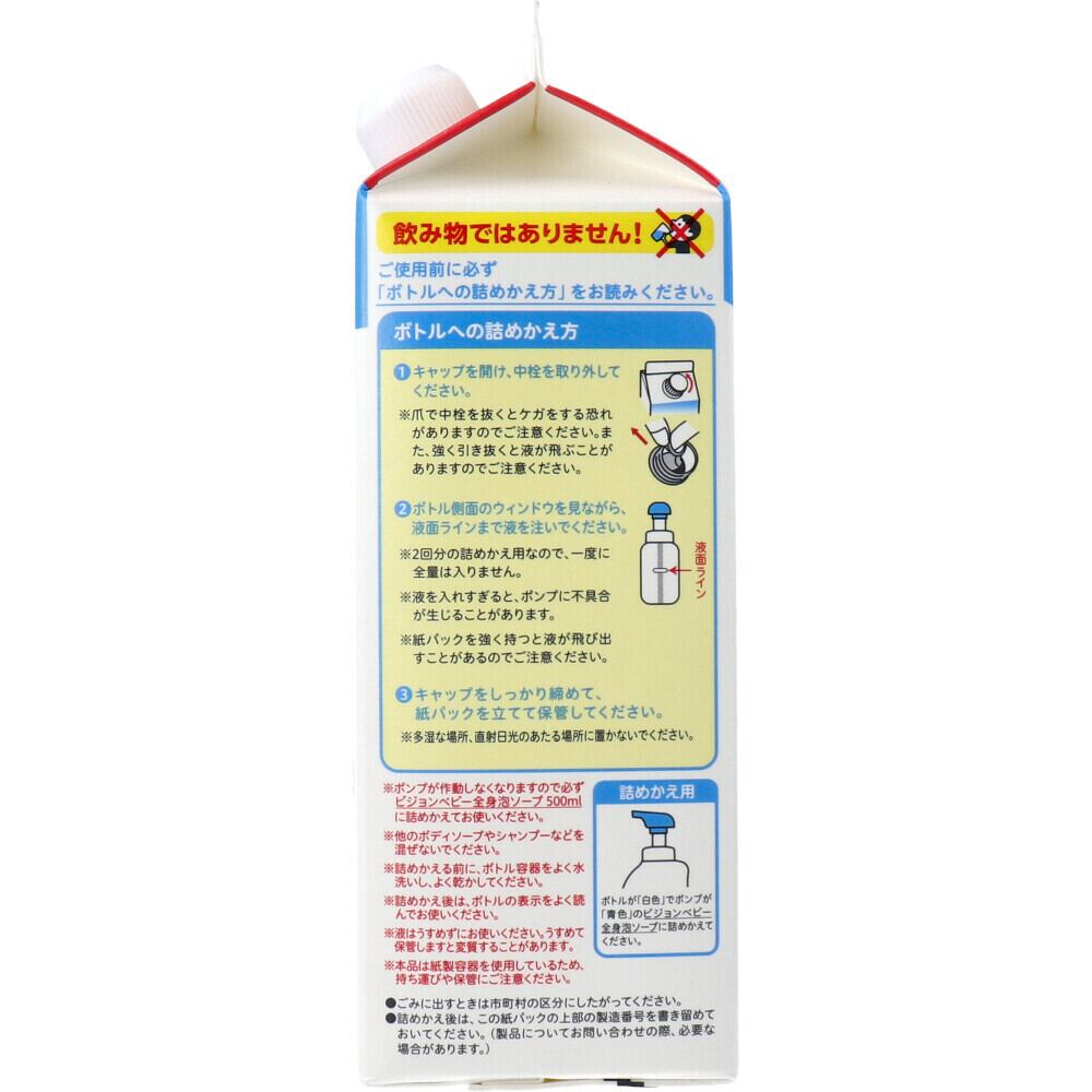 ※ポンプが作動しなくなりますので必ずピジョンベビー全身泡ソープ500mLに詰めかえてお使いください。