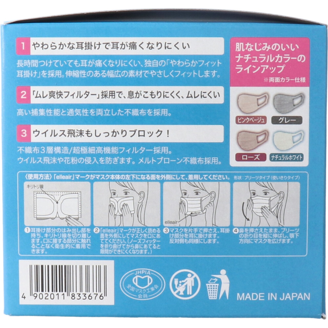 ・「elleair」マークがマスク本体の左下になる面を外側にして、着用してください。