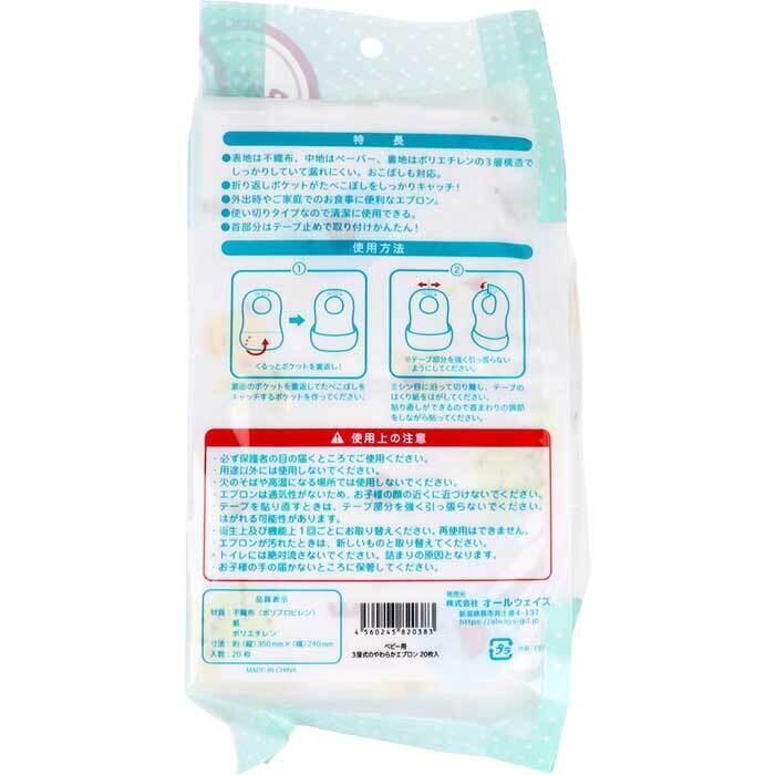 ベビー用 3層式のやわらかエプロン アニマル 使い切りタイプ 20枚入
