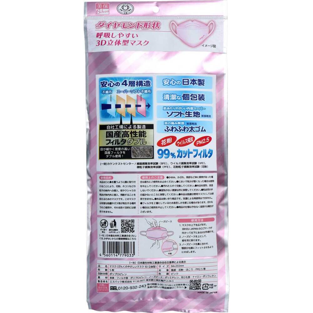 ダイヤモンド形状の呼吸しやすい3D立体型マスクです。