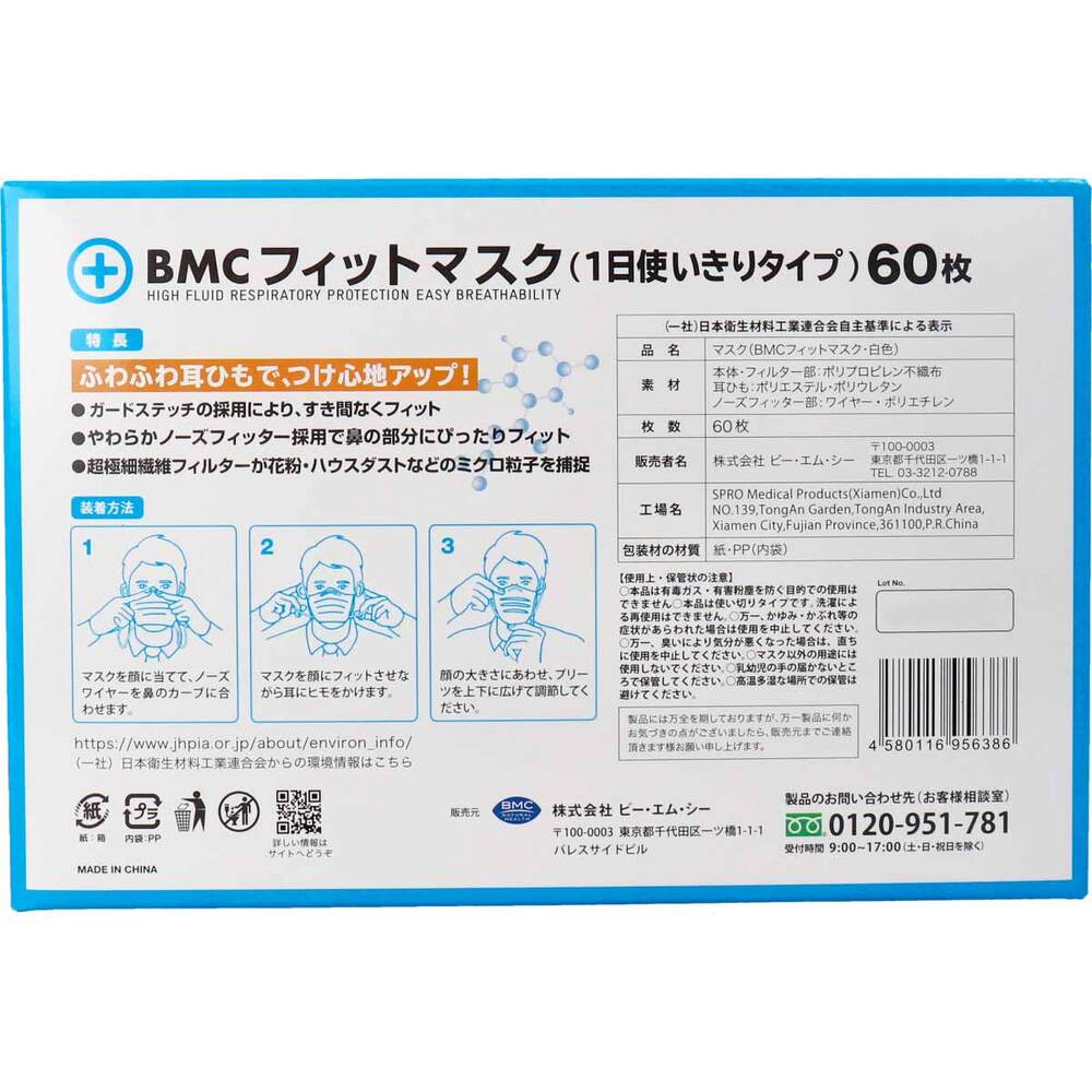 BMC フィットマスク 1日使い切りタイプ レギュラーサイズ 60枚入