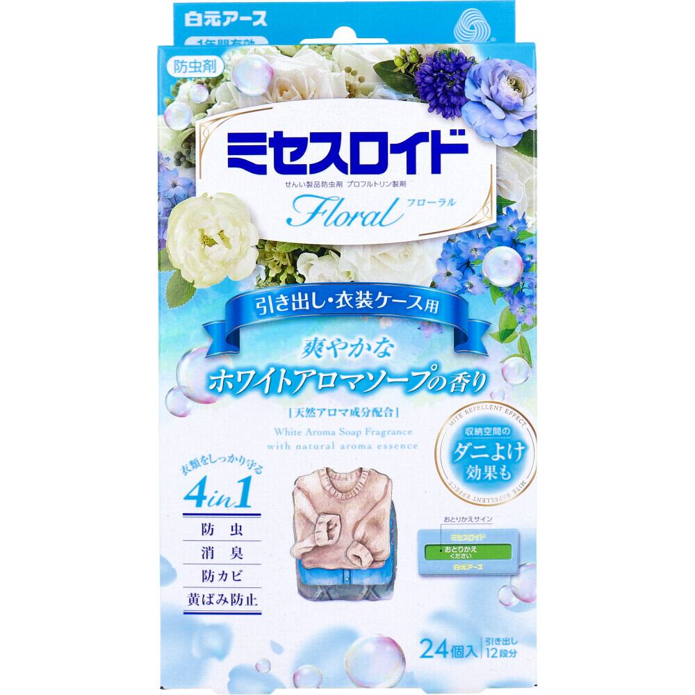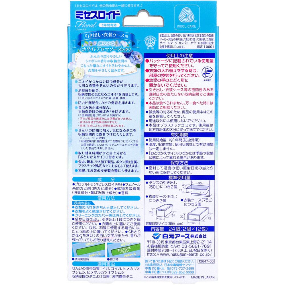 ミセスロイドフローラル 防虫剤 引き出し・衣装ケース用 1年 ホワイトアロマソープの香り 24個入