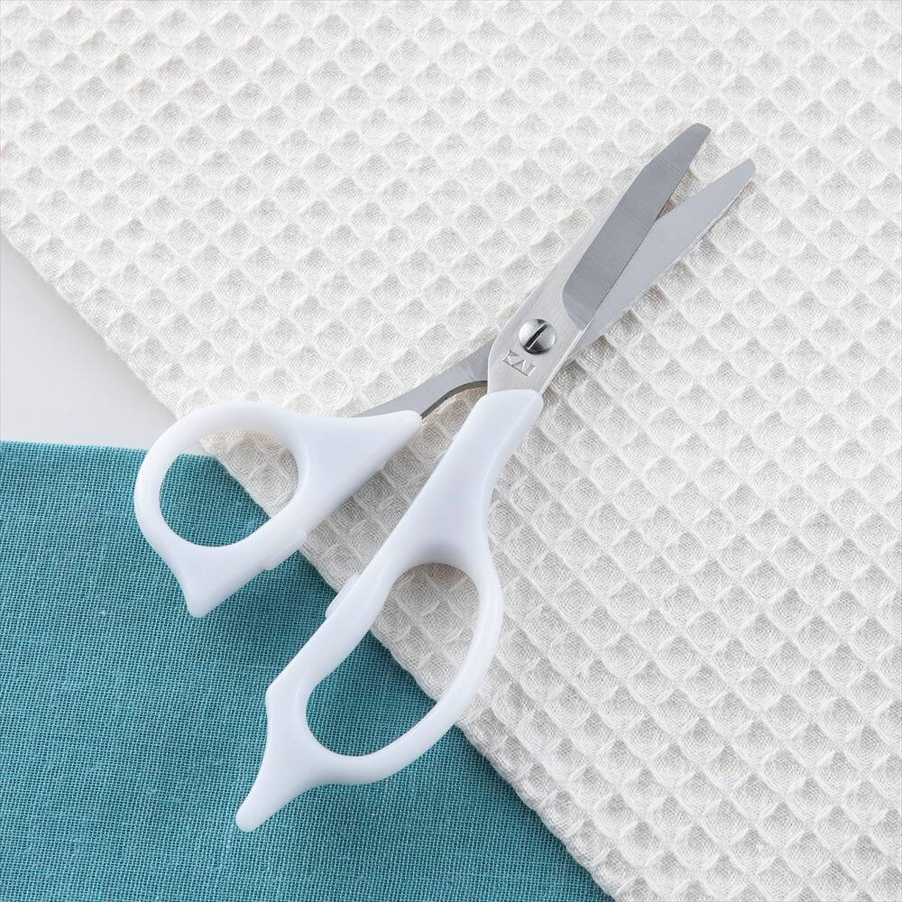 ●指が2本入る広い指穴を採用。また、持ち手の先端には小指掛けを設計。指先がぶれにくく、ハサミを安定させた状態でカットすることができます。