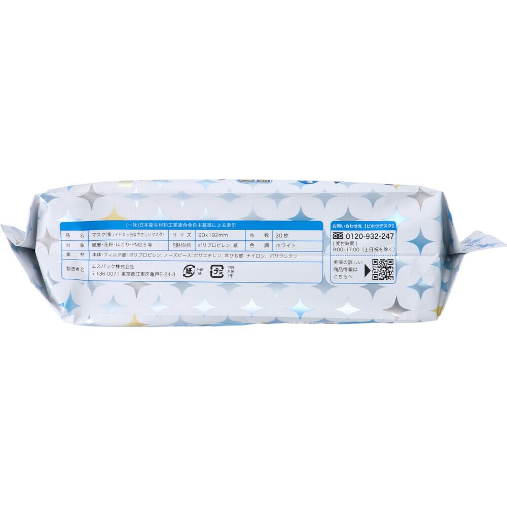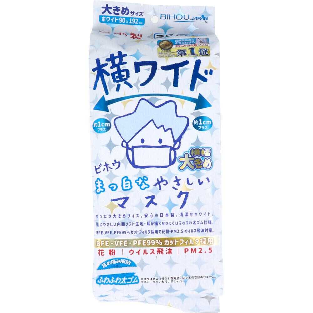 横ワイド まっ白なやさしいマスク 横幅大きめサイズ ホワイト 個包装 30枚入