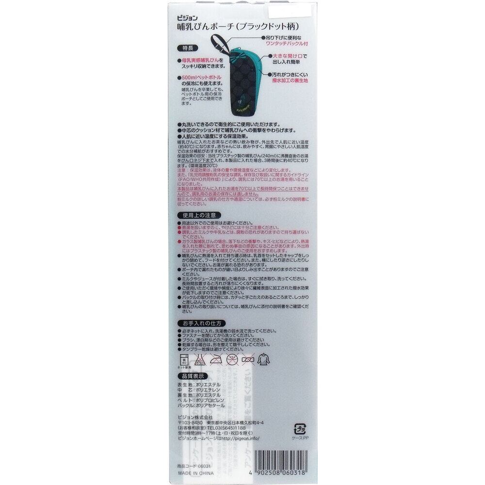 ピジョン 哺乳びんポーチ ブラックドット柄 1個入