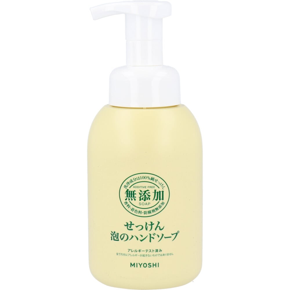 お肌が敏感な方にもやさしい、安心の無添加、泡せっけん。