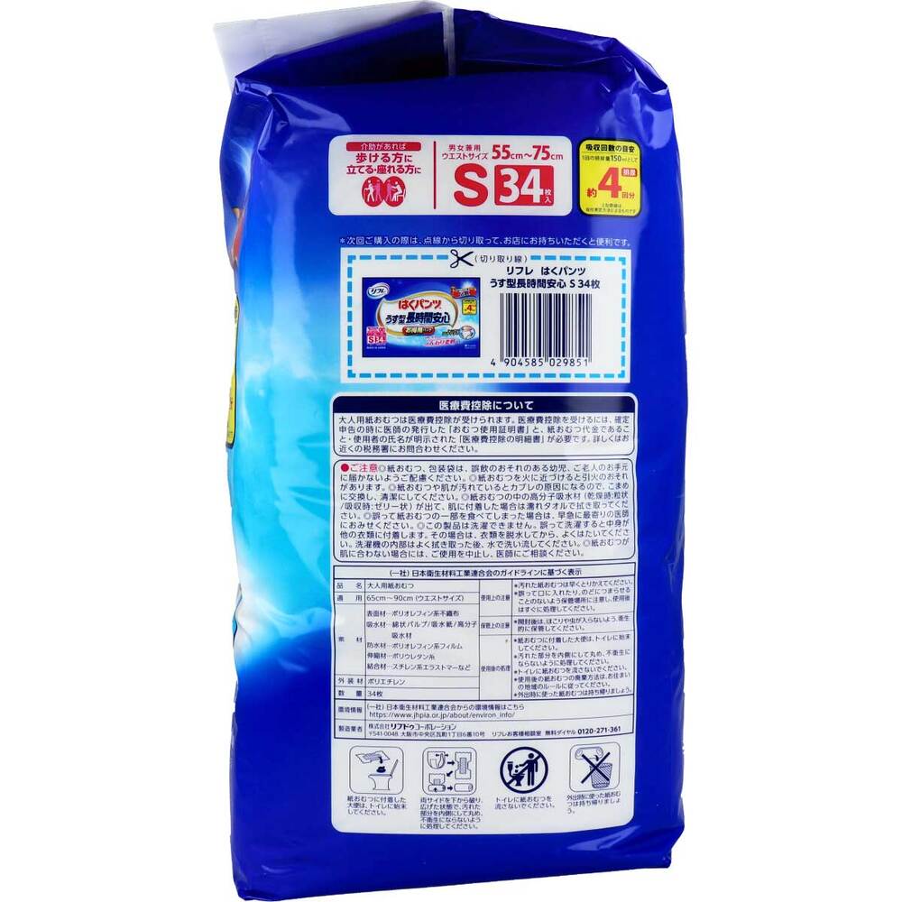 リフレ はくパンツ うす型長時間安心 お得用パック Sサイズ 34枚入